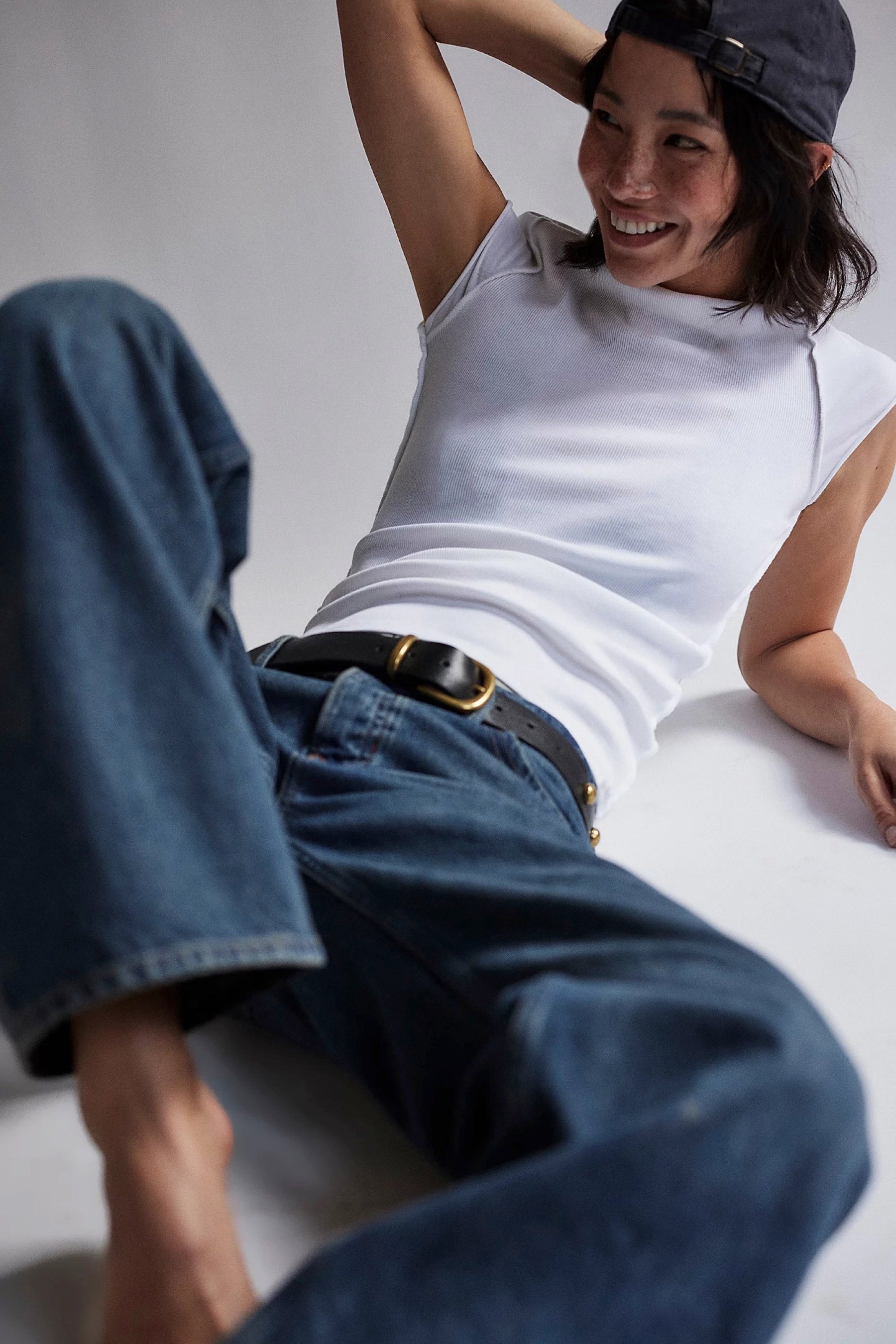 Your new favorite timeless tee, featured in a soft, ribbed knit fabrication and slim-fitting silhouette with raised seam detailing and cap-inspired sleeves.