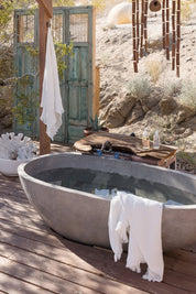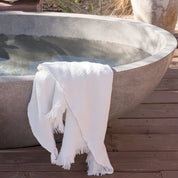 As plush and cozy as a traditional bath towel, the waffle weave of the Ella towel provides superior absorbency and effective airflow which allows for quick drying. Made in Turkey.