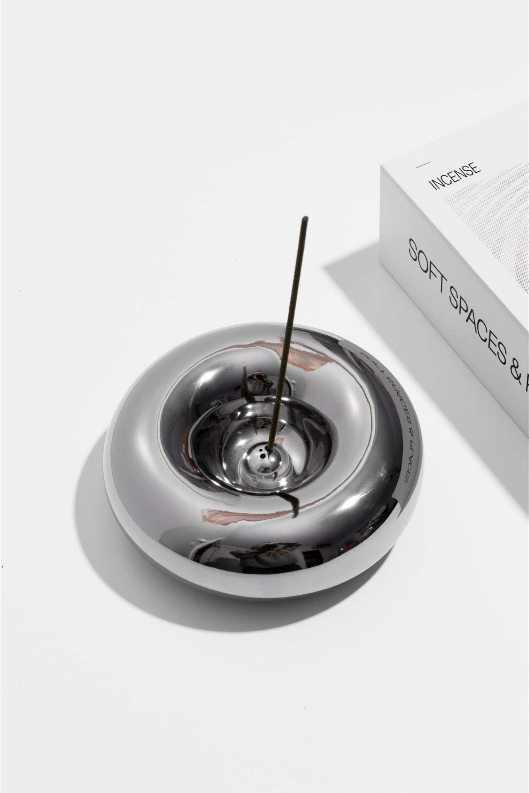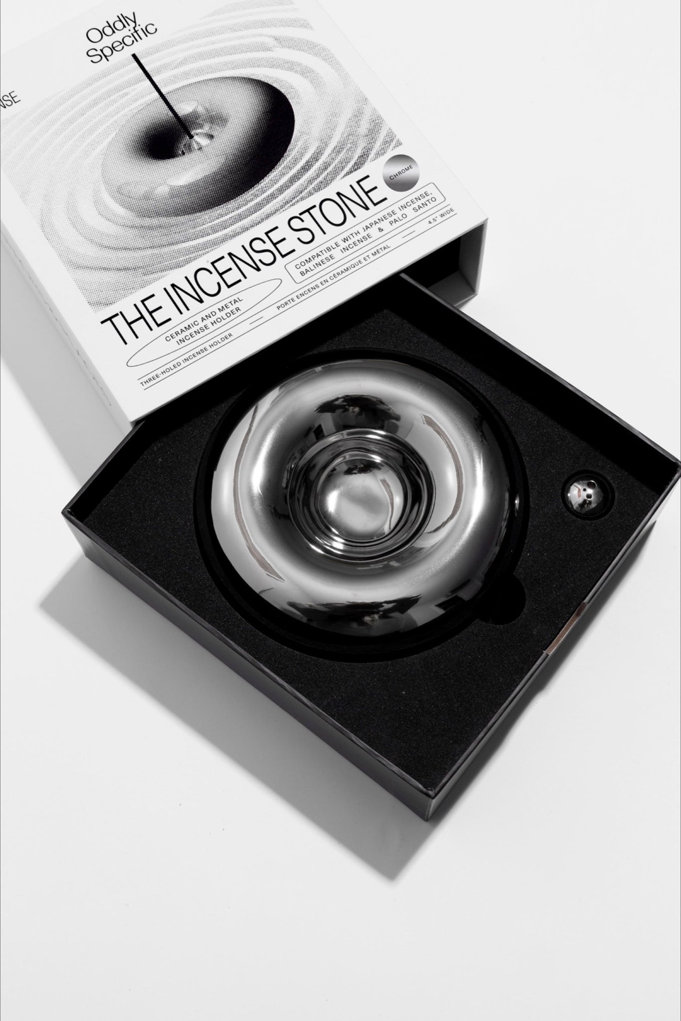 Inspired by nature and crafted with intention, the chrome Incense Stone is a harmonious blend of ceramic and metal. Compatible with a range of incense, the three-holed design works with Japanese incense, Balinese incense and Palo Santo.