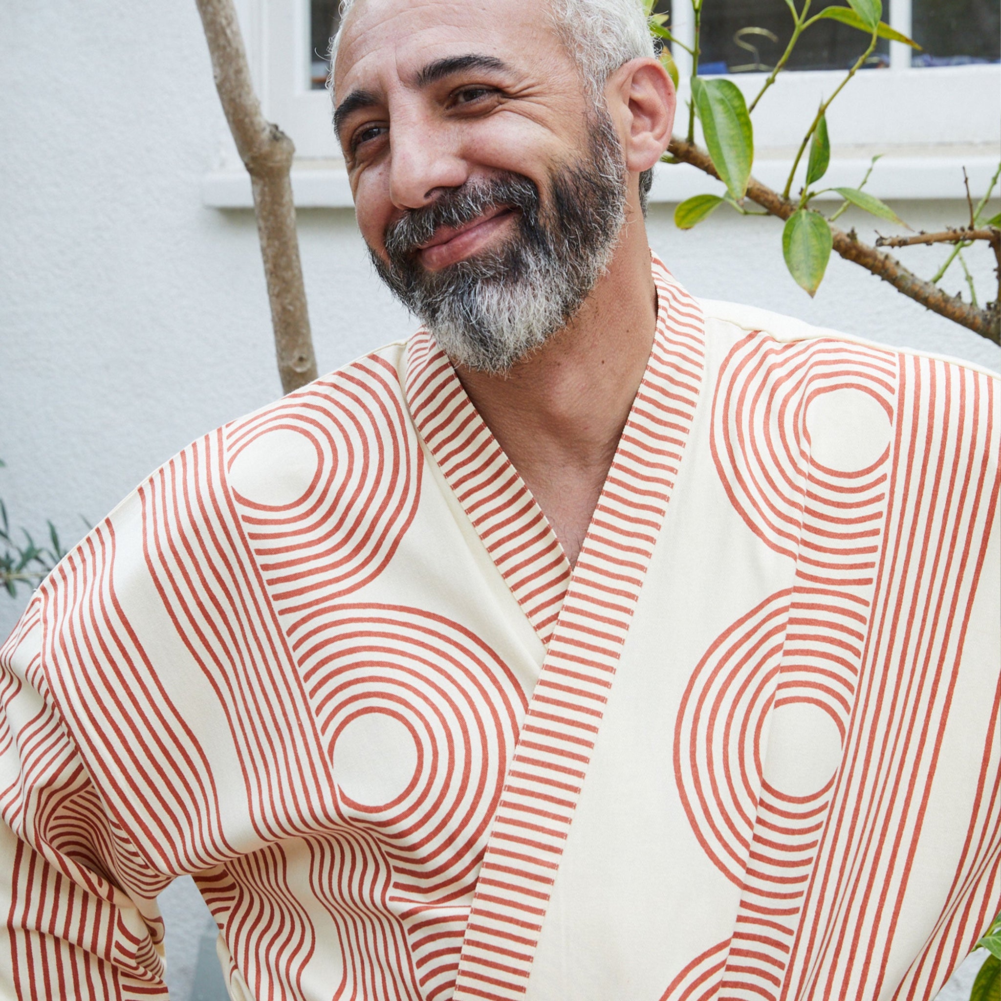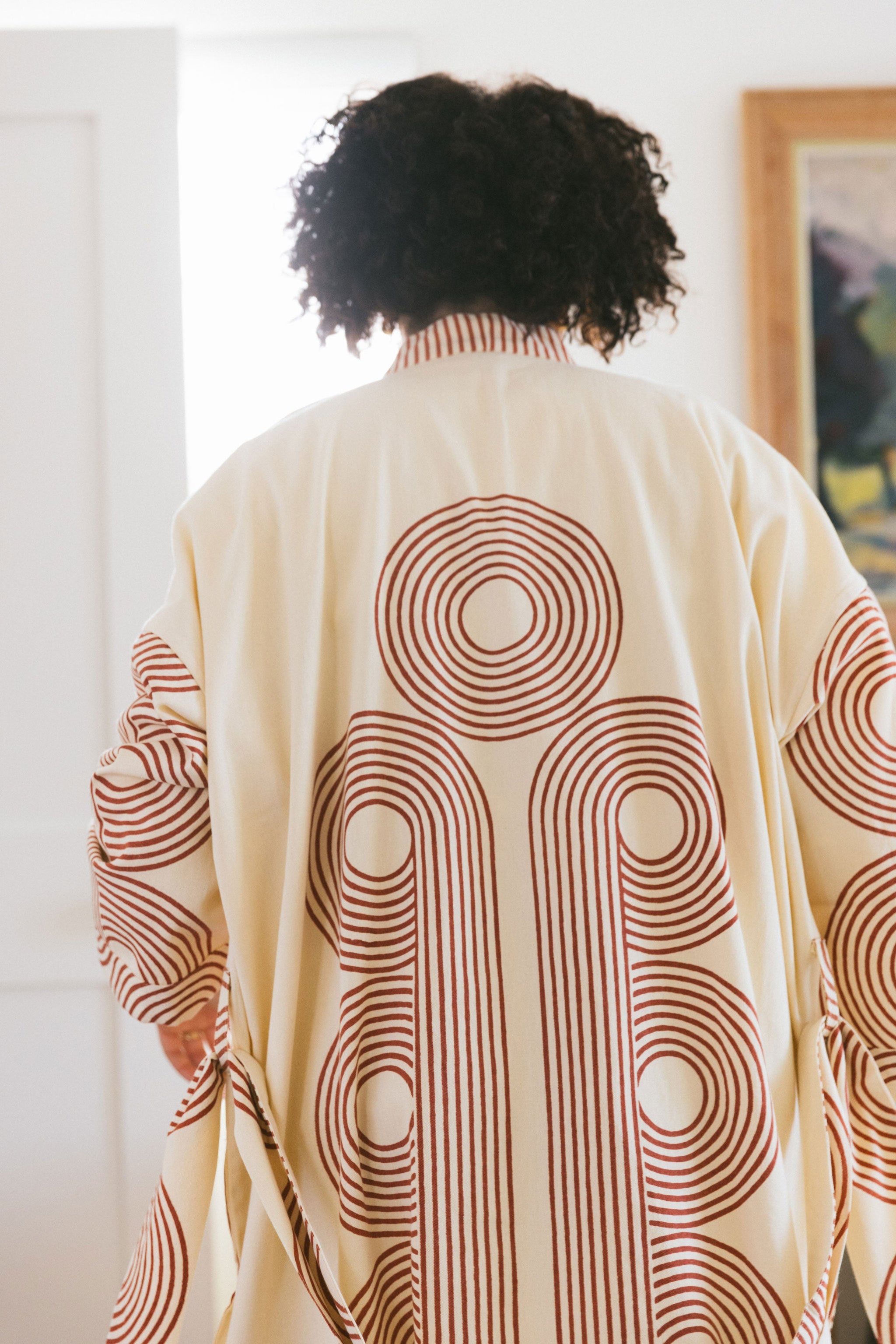 The most elegant robe in a gorgeous cotton twill weave for year-round coziness. The Poiret is designed for making dramatic entrances down staircases in a bold slipper, a la Gloria Swanson in Sunset Blvd. Hand block printed on our new luxe, slightly heavier-weight, super soft cotton.