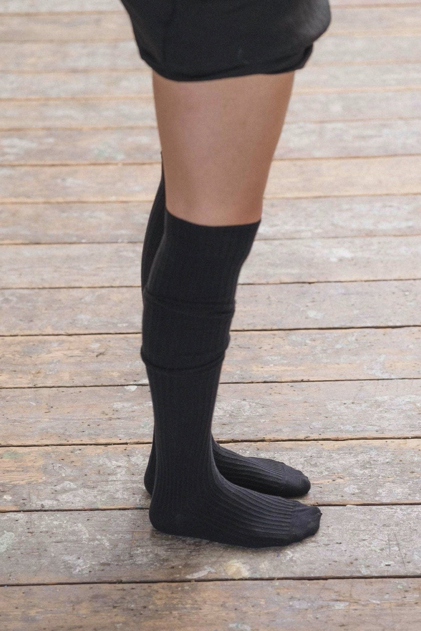 Rib knit knee-high socks, made in France.