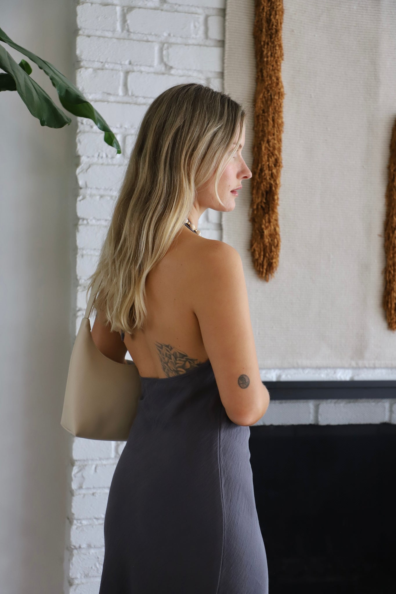 Designed with a sleek halter neckline and flowing bias cut silhouette, this maxi dress is made from a lightweight blend of lyocell and rayon for a luxurious feel. A timeless piece for both formal events and casual elegance, it is designed to accentuate the right places for a figure-flattering finish.
