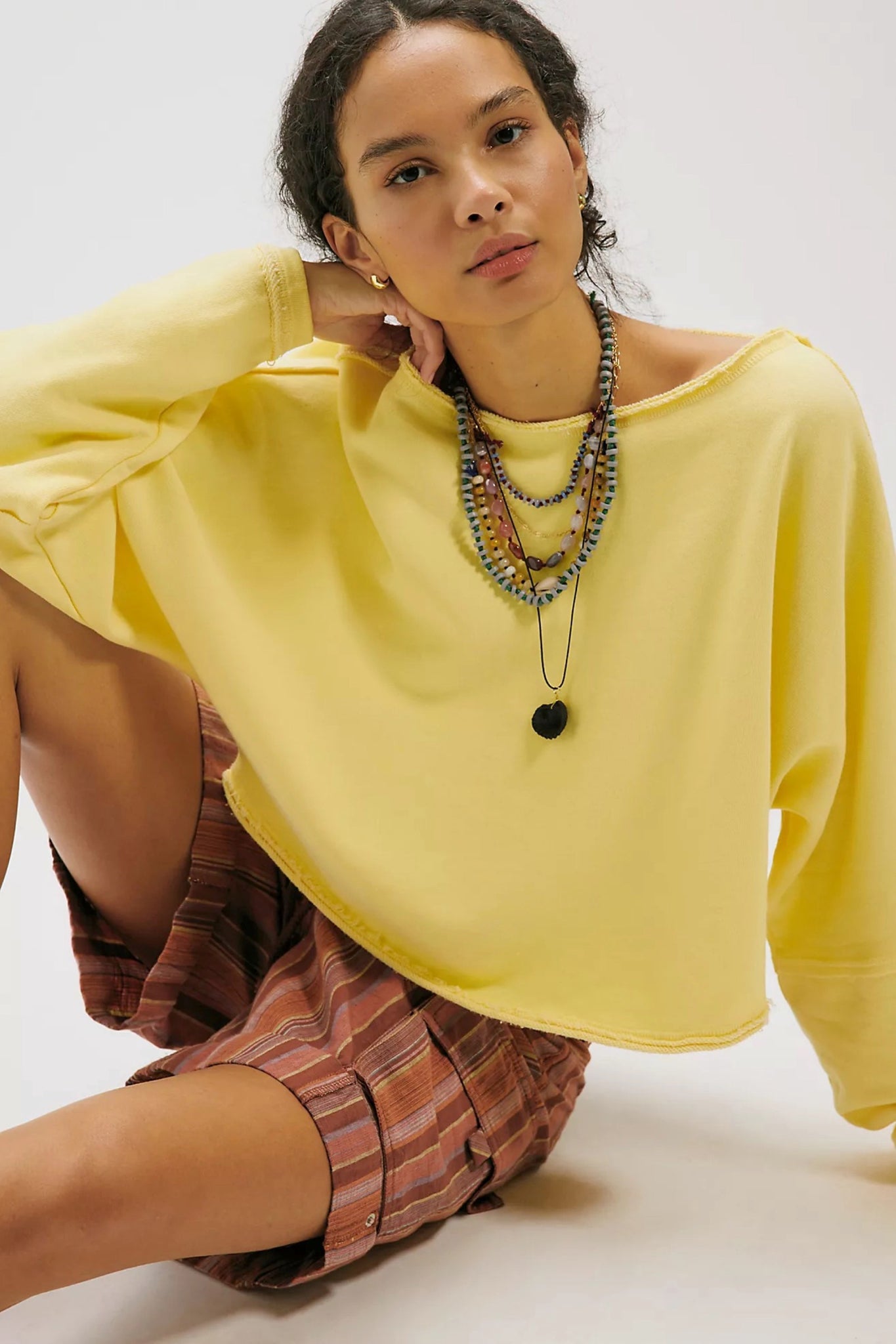Your new favorite wardrobe staple, this essential pullover features a slouchy, cropped silhouette, a soft cotton-blend fabrication, and frayed seams for an edgy finish.