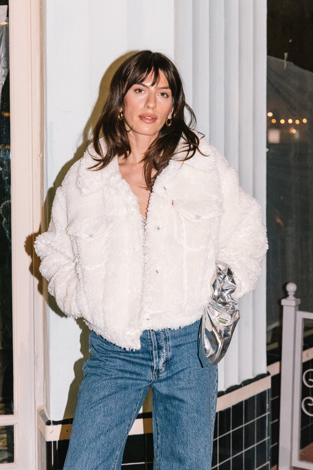 A cozy, cropped alternative to the original Trucker Jacket, this Baby Bubble Sherpa Trucker Jacket is easy to throw on and warm as can be. Crafted with a slightly cropped, bubble fit and a sherpa design.