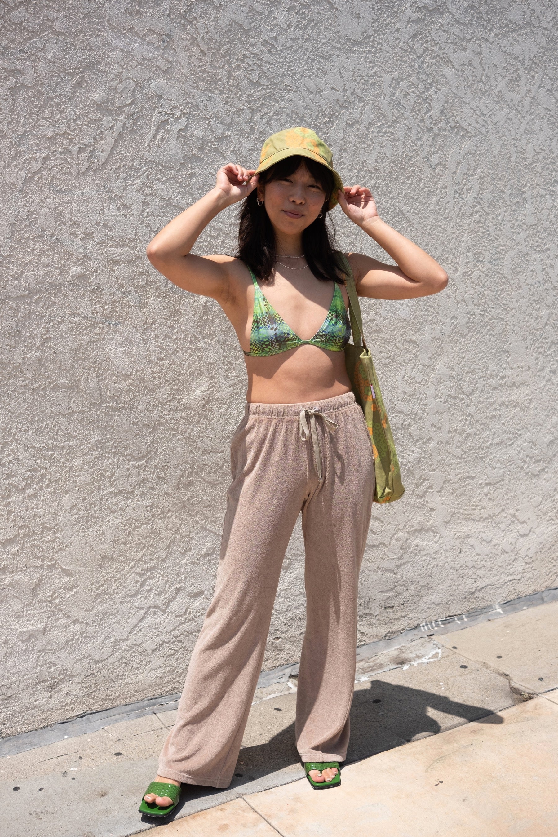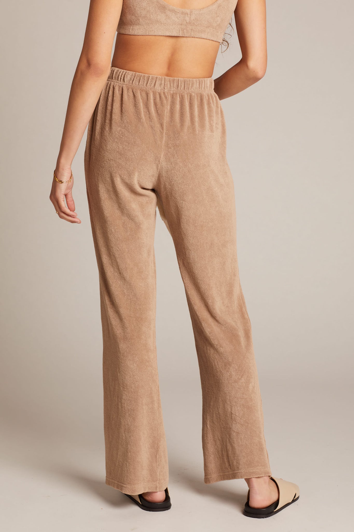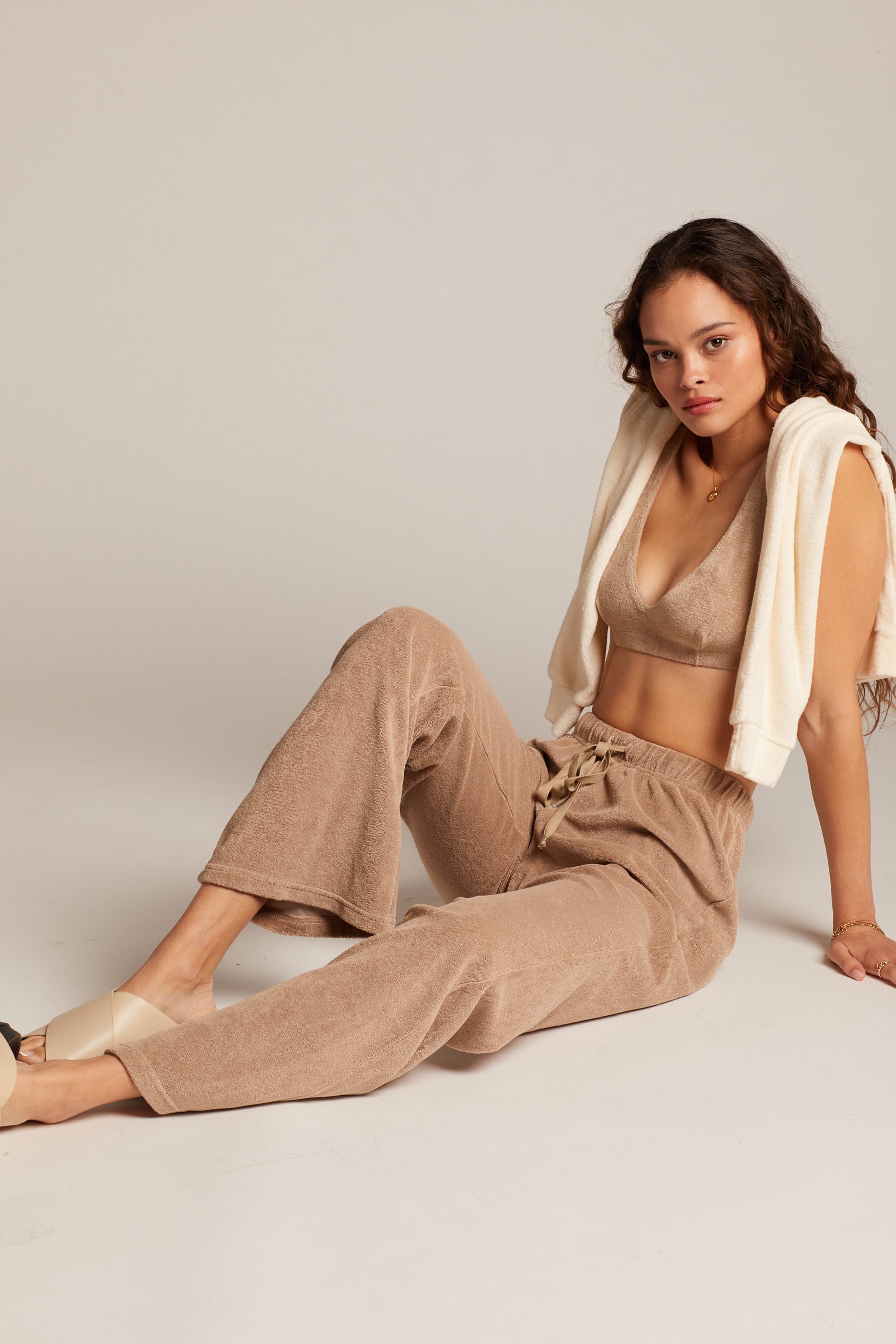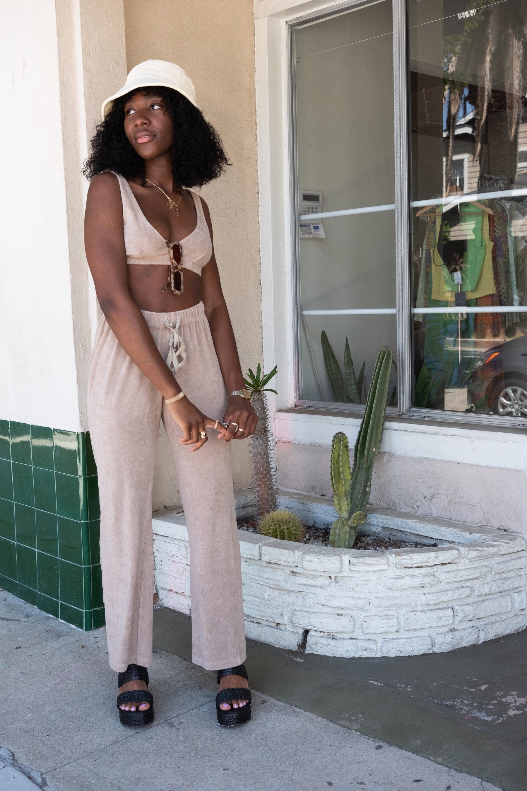 Cozy sweatpants featuring a vintage inspired terry fabric and mother of pearl buttons. Made in LA.