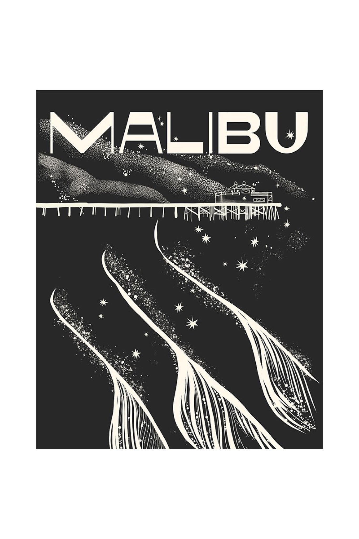 A bold, hand-drawn print capturing the energy of Malibu’s iconic surf, waves, and historic pier. With a graphic, modern style, this piece brings a fresh take on California’s most legendary surf spot. Printed on high-quality archival paper with rich, lasting color, it’s perfect for collectors, coastal decor, and surf-inspired spaces.