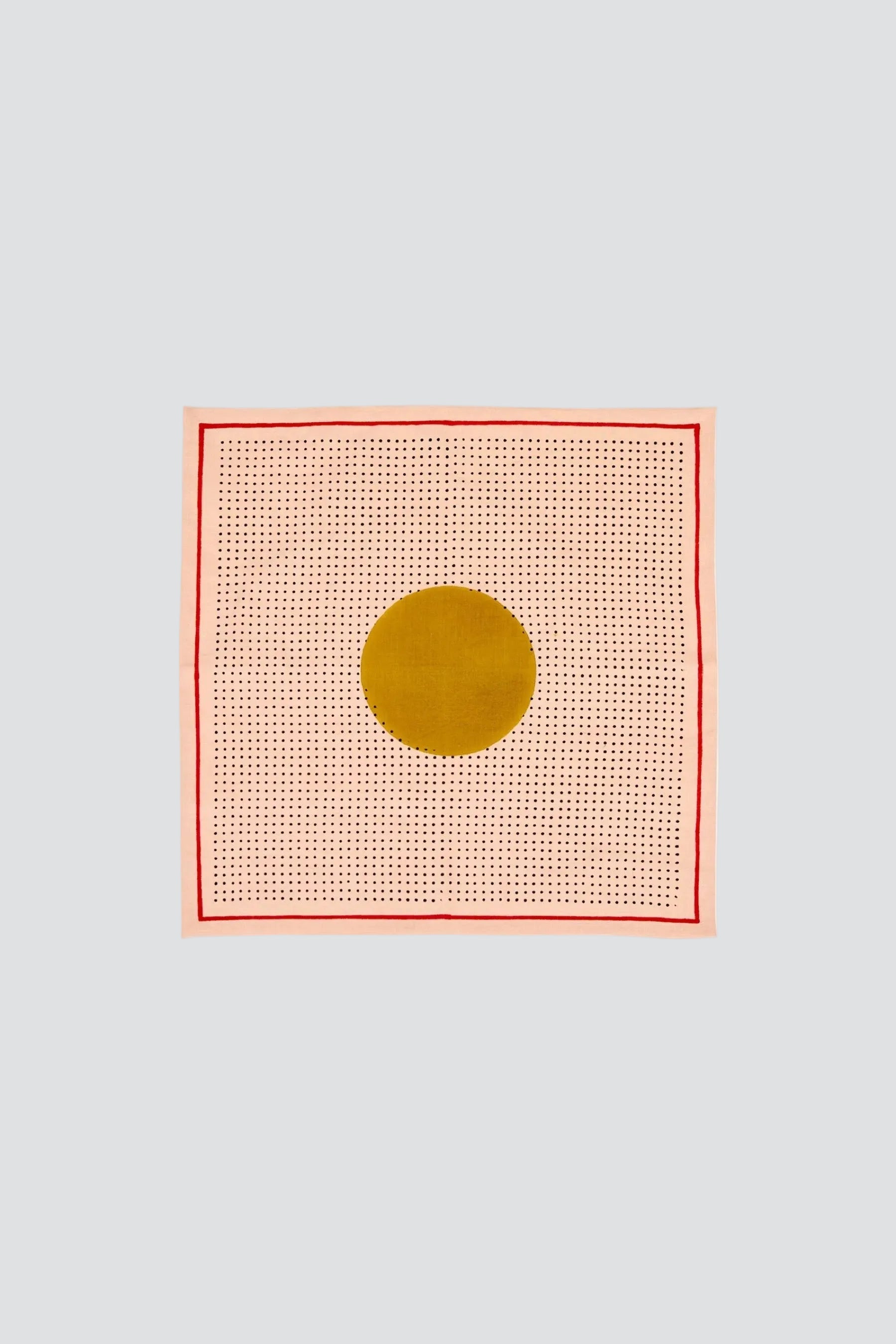 The new solstice napkin in our beloved peach & ochre colorway with the cutest persimmon border and black dots. Mix and match with just about everything in our table linens department. Hand block printed on a luxe cotton-linen blend.
