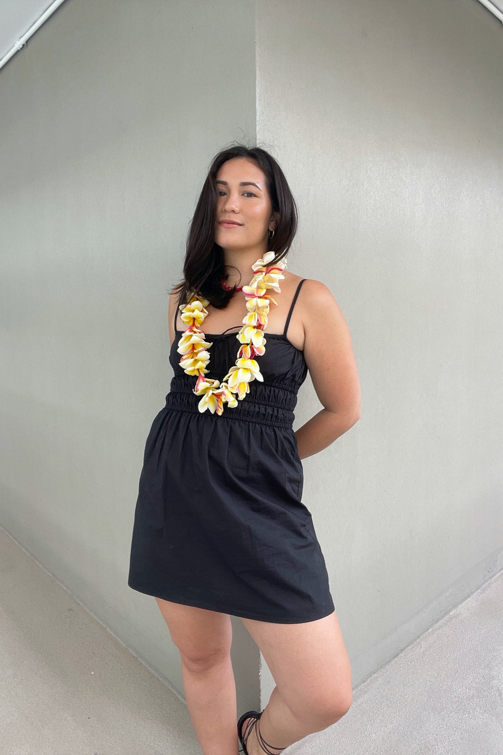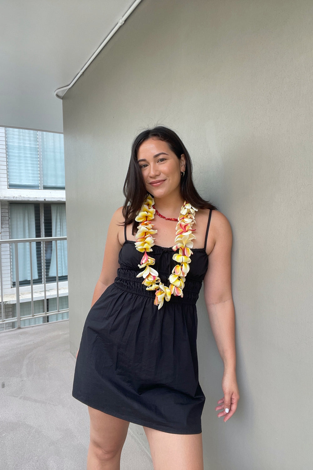 Designed for the sun seeker, the Alboa Mini Dress is defined with a scoop neckline, tie detail at front, shirred waistband for comfort and an easy-wearing gathered skirt.