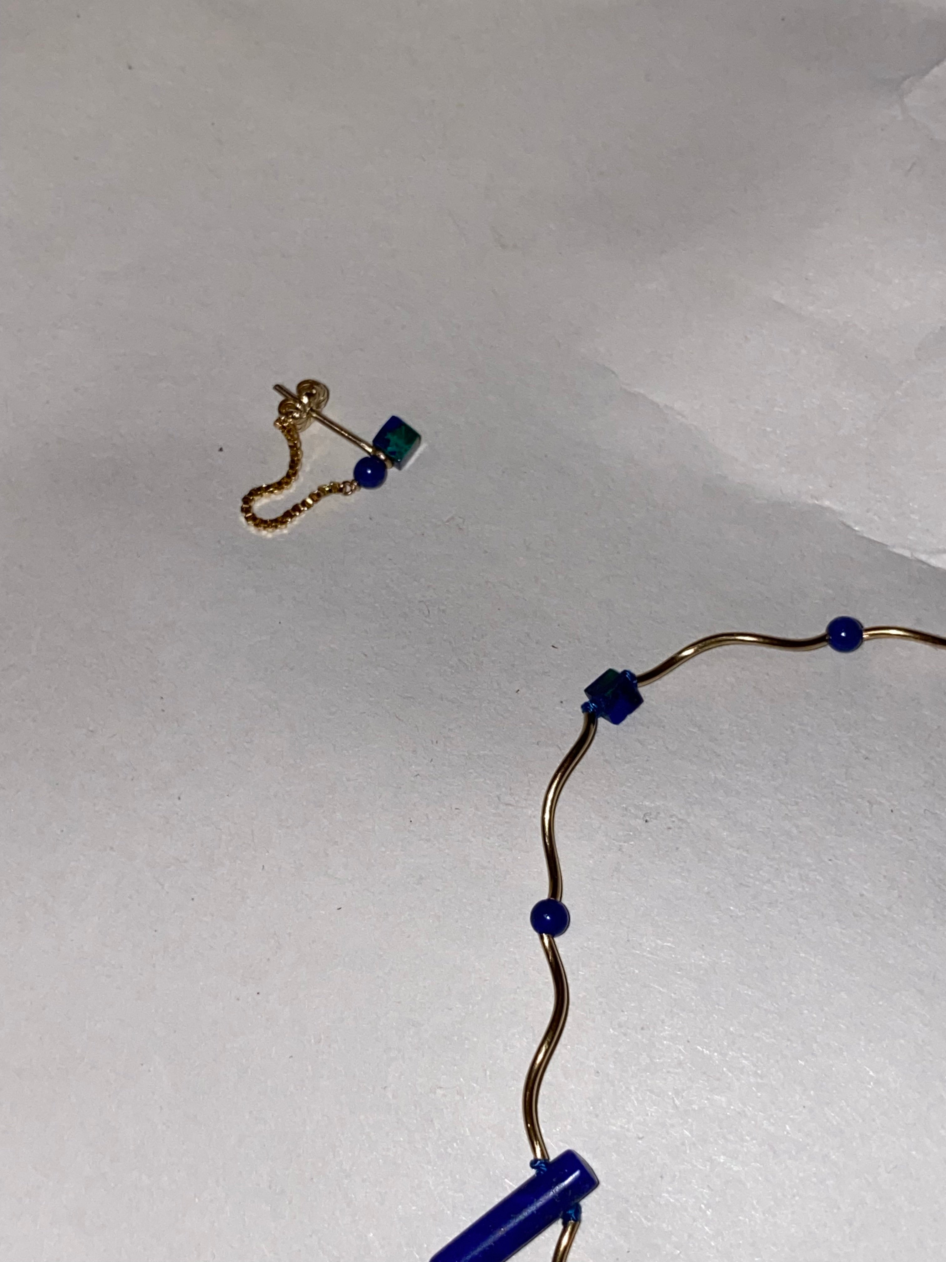 Materials: Gold Filled or Sterling Silver, Lapis Lazuli, Azurite, and Sodalite