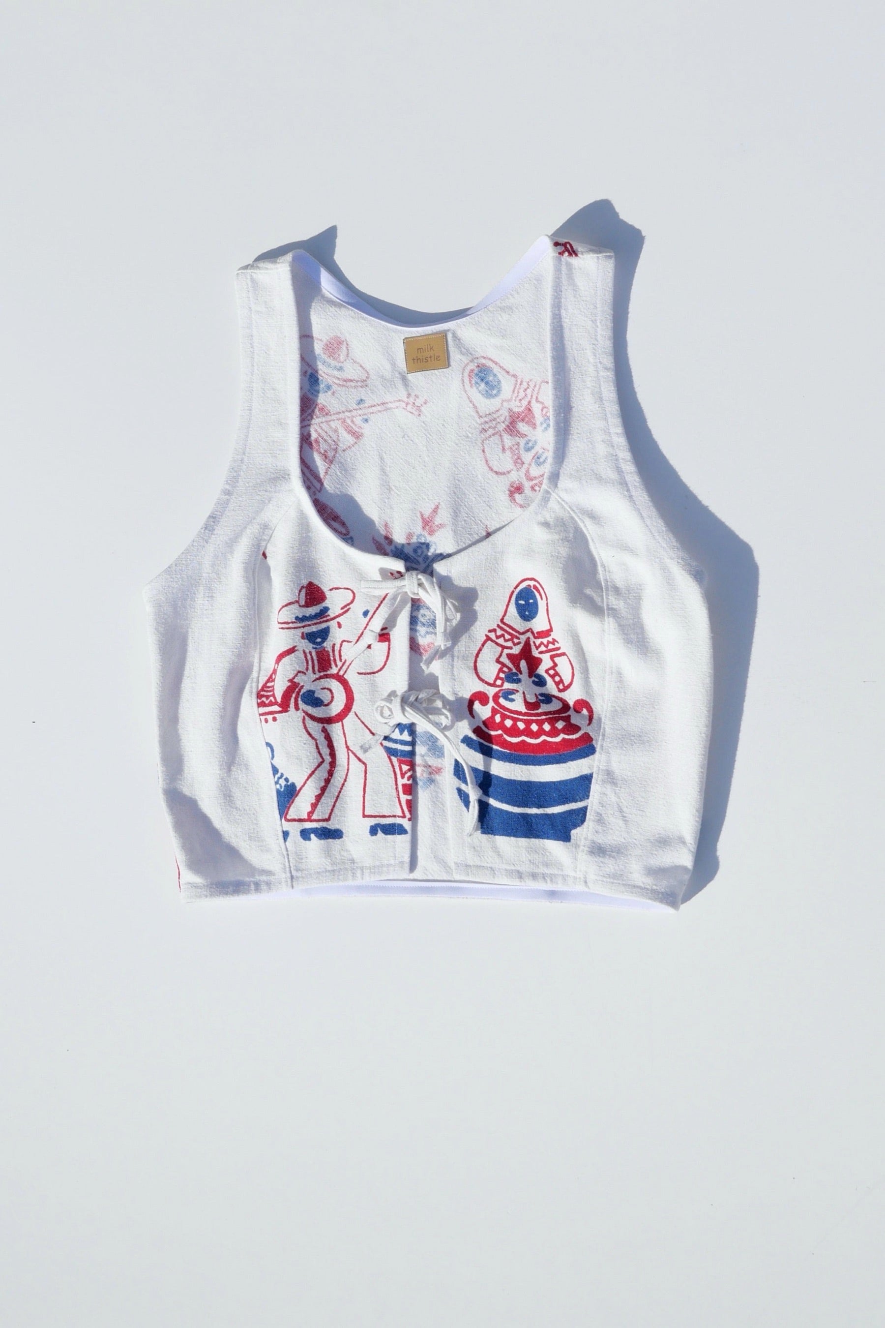 One of a kind tie front tank top handmade from vintage textiles in Long Beach, CA.