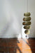 Brass light catcher featuring hand cut shapes from brass sheet + chain. Suspend this from the ceiling (with a ceiling hook) near a window or hanging from your curtain rod to experience the light magic of this piece. Handmade in California.