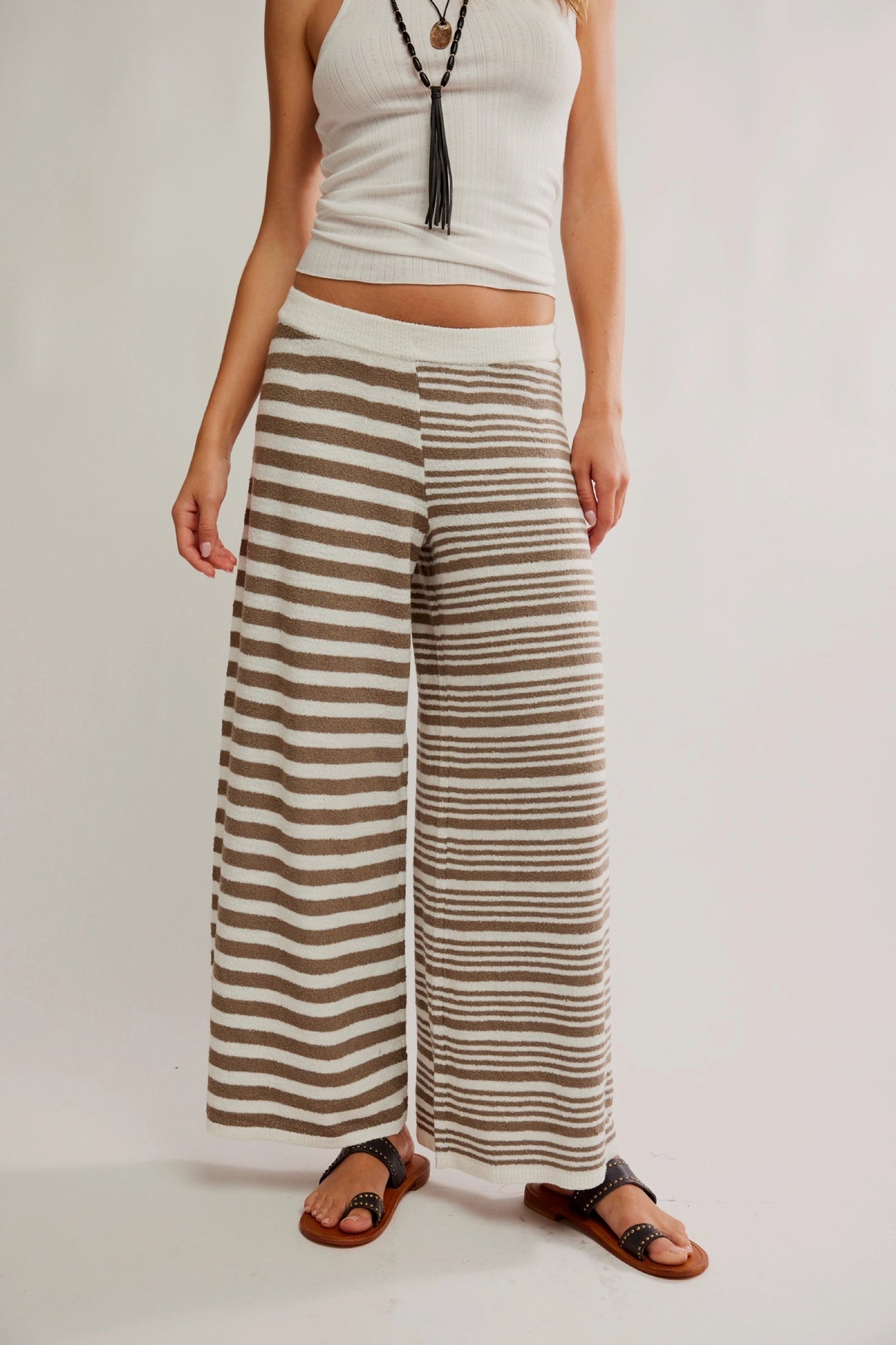 A beachy staple goes bold with these wide-leg sweater pants from free-est, featured in a dual-patterned design for an extra head-turning touch.