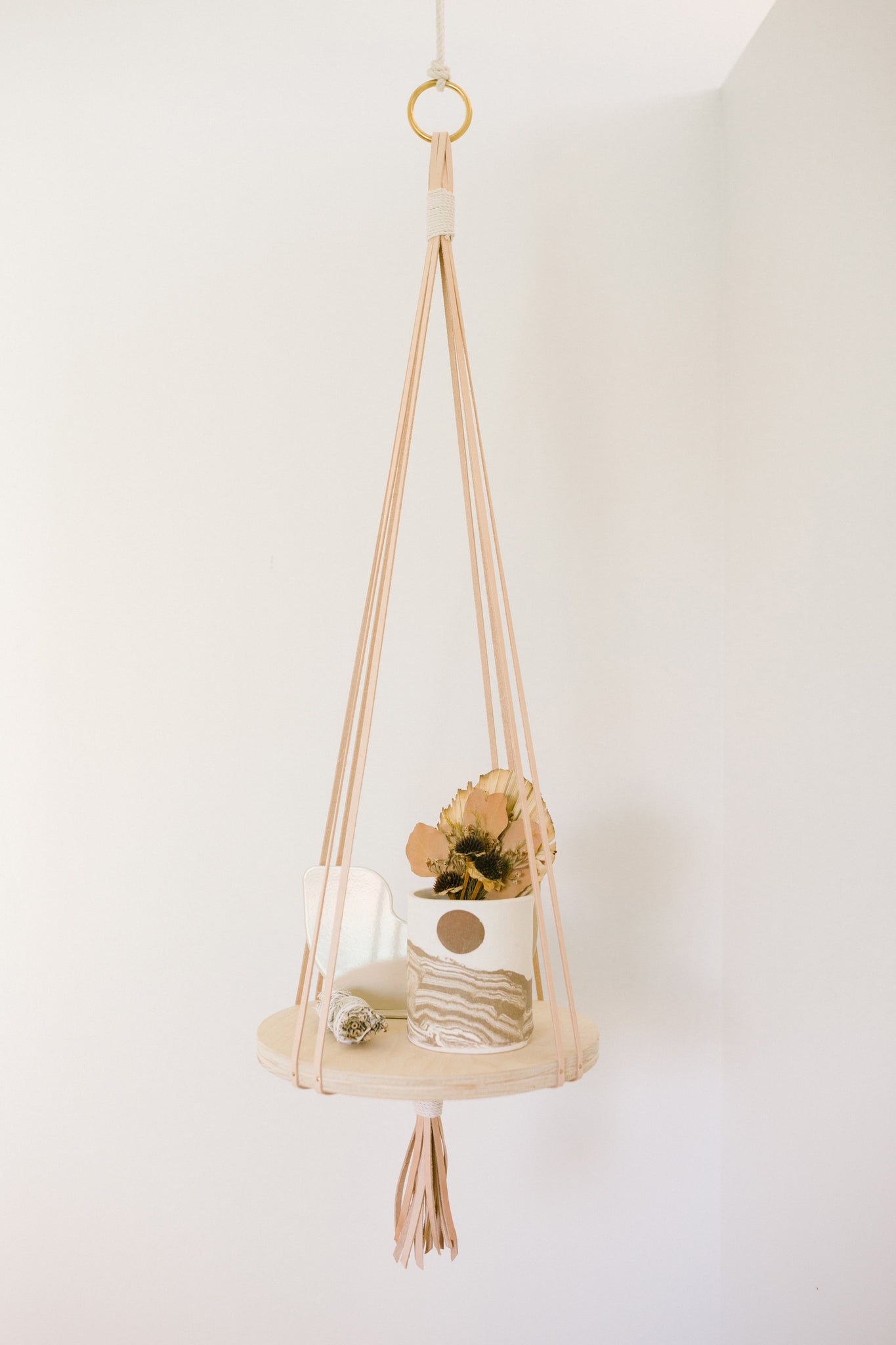 Please Note: All plant stands are made with birch plywood and cotton rope, and are intended for indoor use only. Wipe up all water spills immediately to avoid damage to wood and leather. All plant stands were made to fit 8" pots.