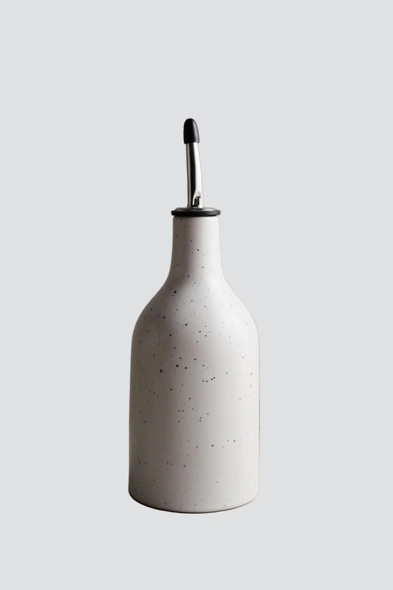 Expertly crafted, the Ceramic Cruet adds a touch of elegance to any dining experience. Made of high-quality ceramic, with a white glaze and dark speckles, this cruet is the perfect vessel for storing and pouring your favorite oils or dressings.
