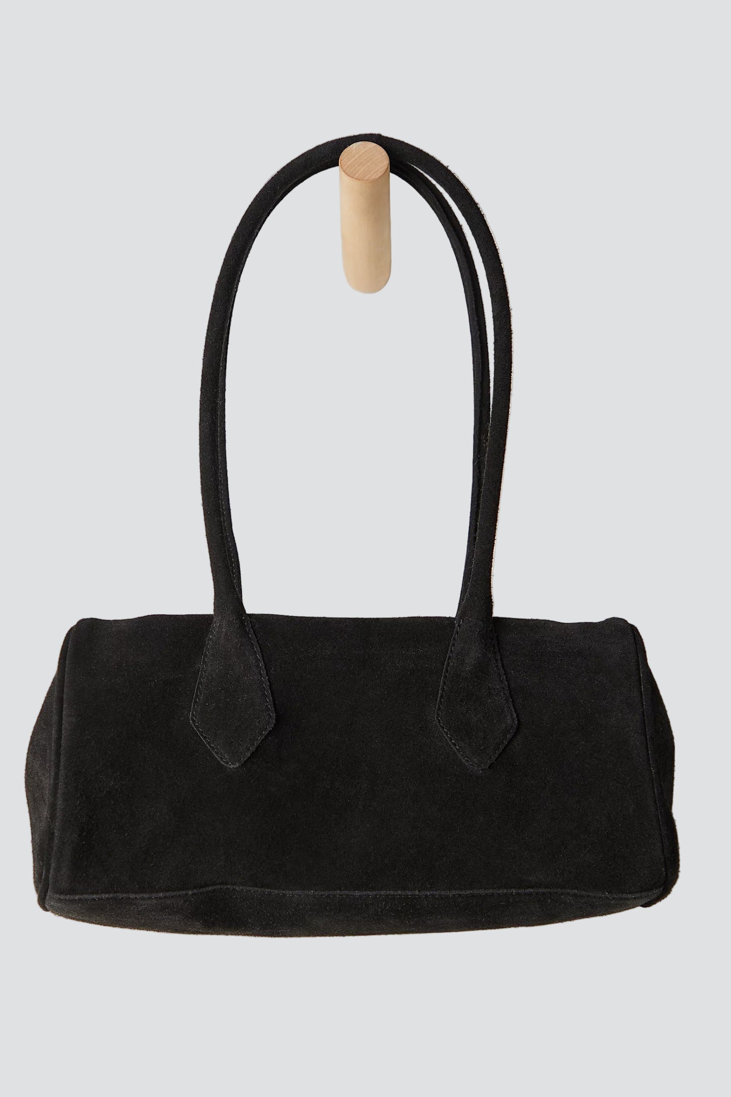 This totally tubular shoulder bag features signature FP Collection vintage-inspired touches in an all-over suede fabrication with an interior zipped pocket for special storage.