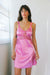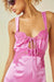 Lacy satin mini slip dress featuring a chest cutout and tie closure.