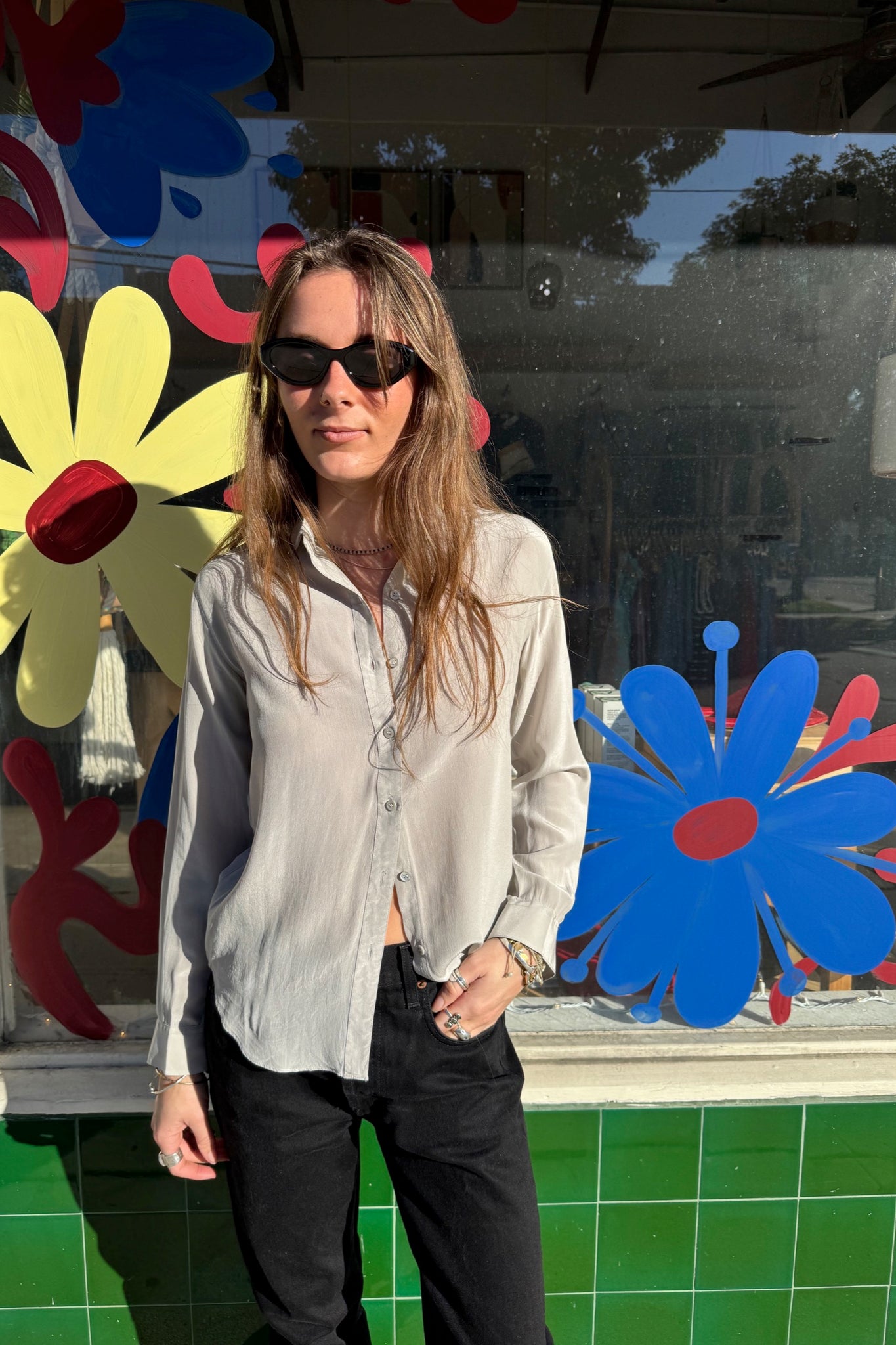 Grey Silk Button Up