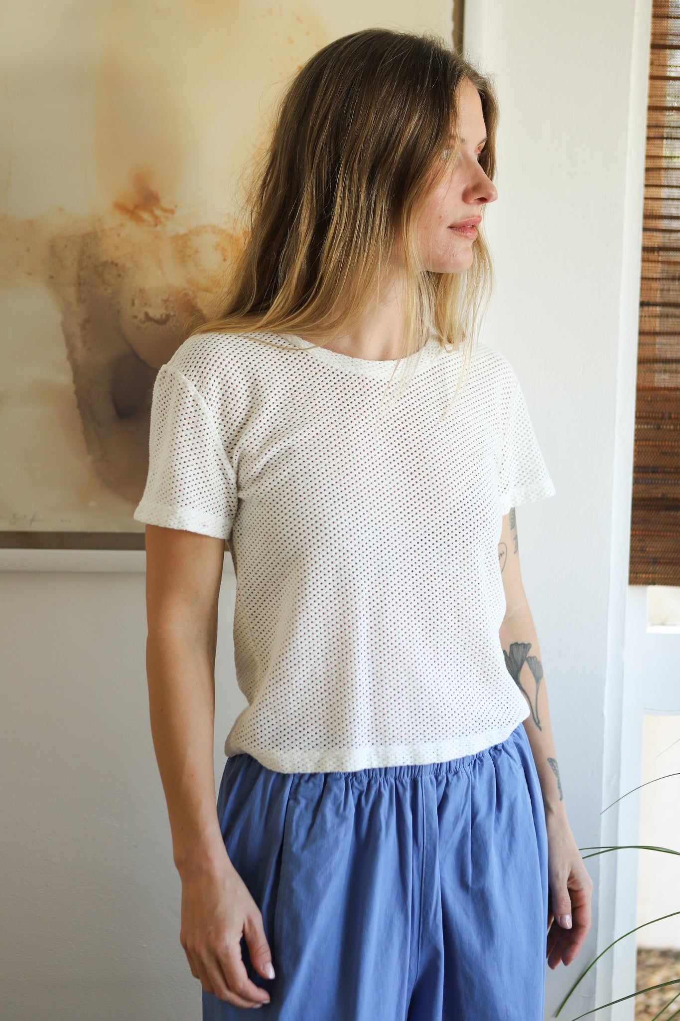 Washed White Carmen Mesh Tee