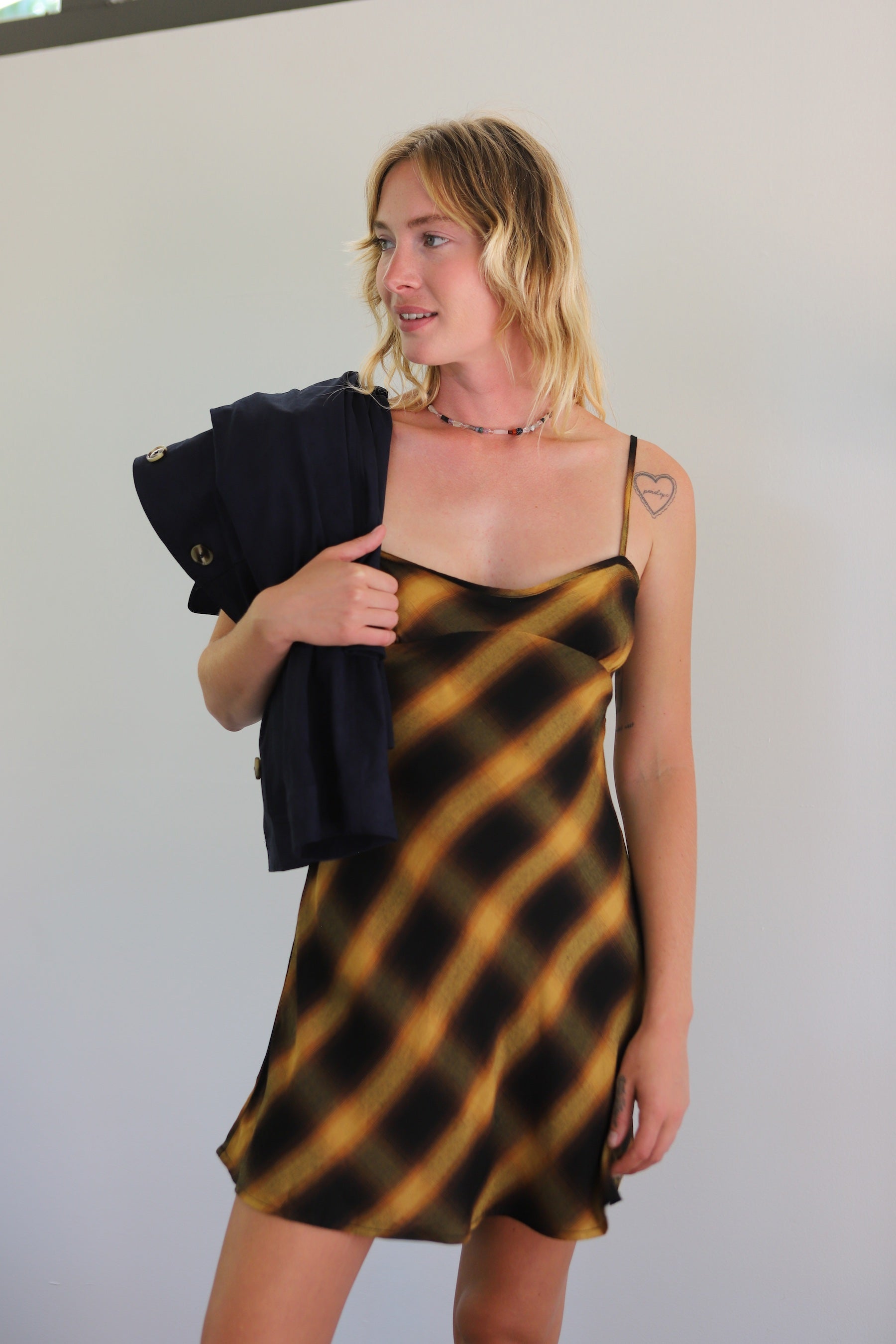 Embrace the cozy charm of fall with the Bronze Lost Signal Dress. Its spaghetti straps and rich autumn hues bring a playful touch to your seasonal wardrobe.
