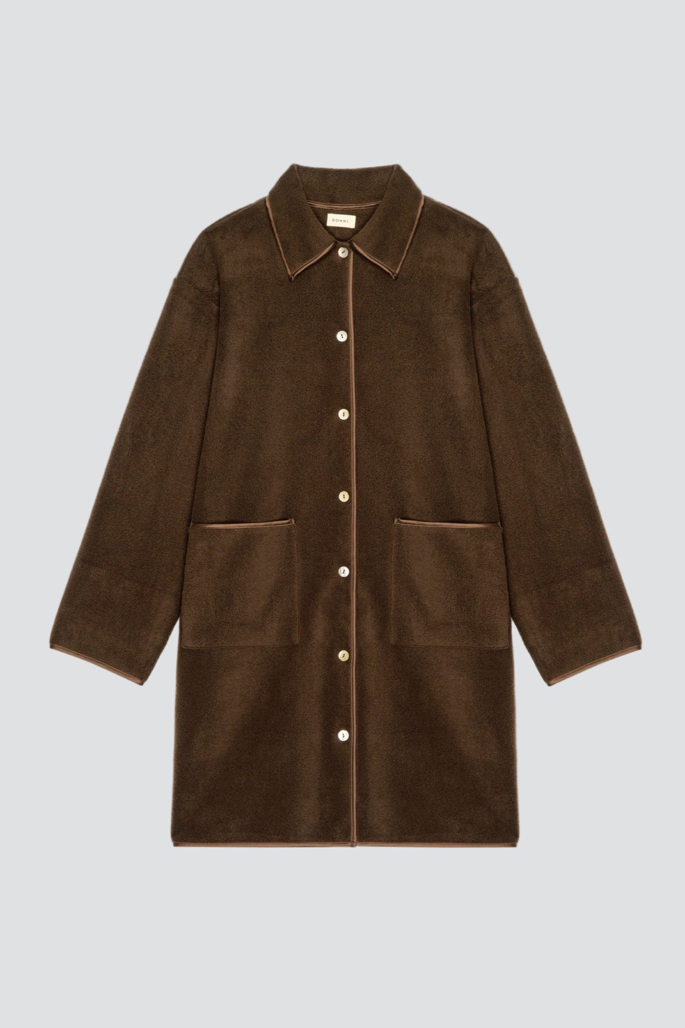 Stay warm and stylish in the Espresso Polar Fleece Coat. This long, cozy fleece features convenient patch pockets and a classic button-up front, blending comfort and functionality.