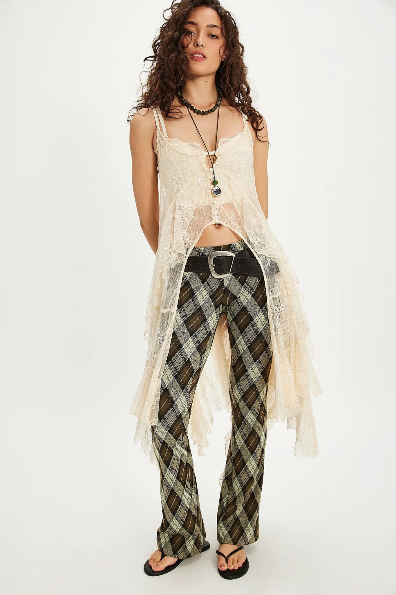 Perfect in plaid, these bold knit pants feature a flattering flare fit, easy pull-on design, and soft stretch fabric for a cozy finish.
