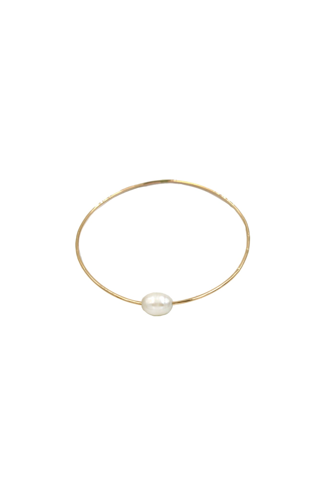 Simple gold fill bangle with White Pearl bead. Handmade  in Long Beach, CA.