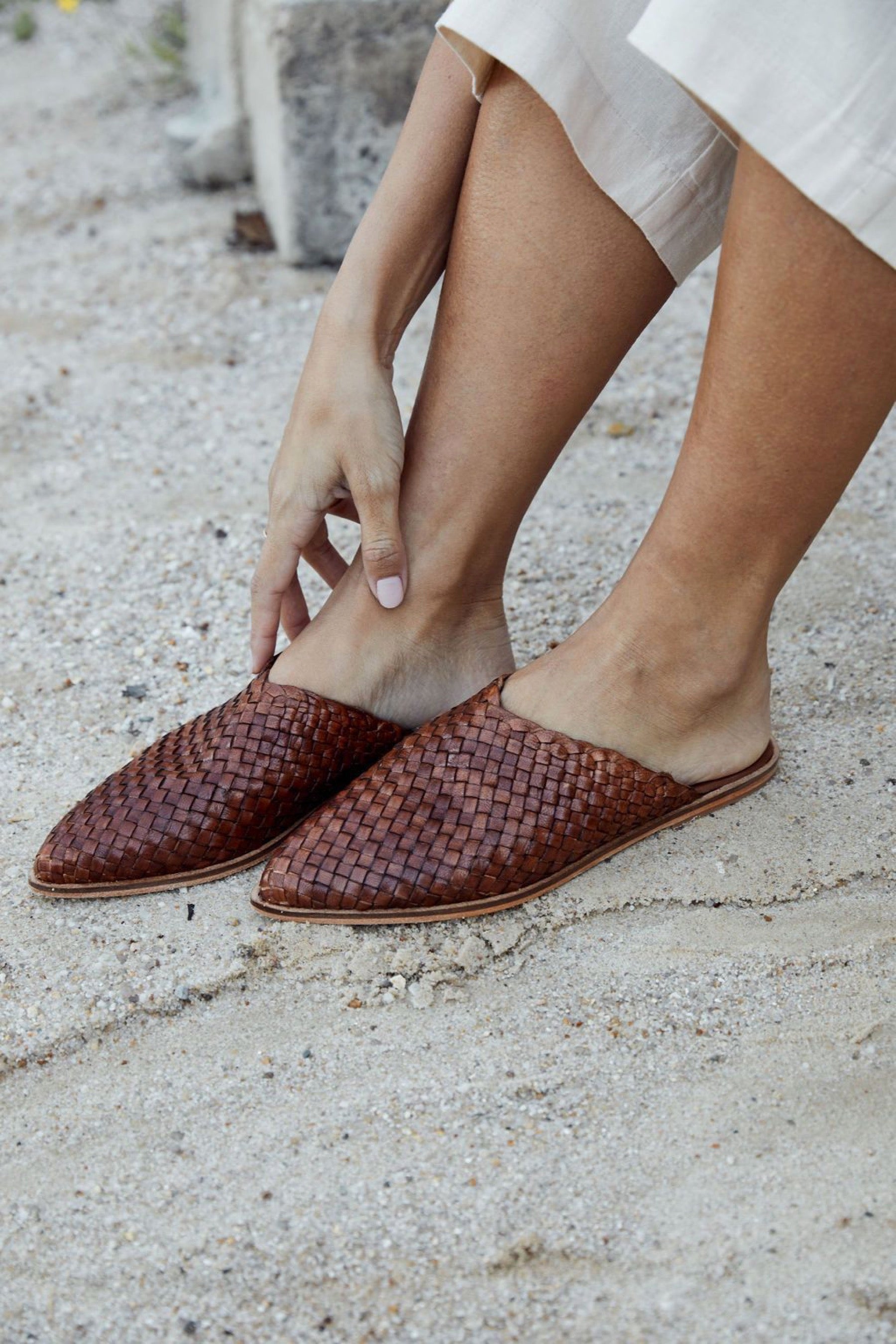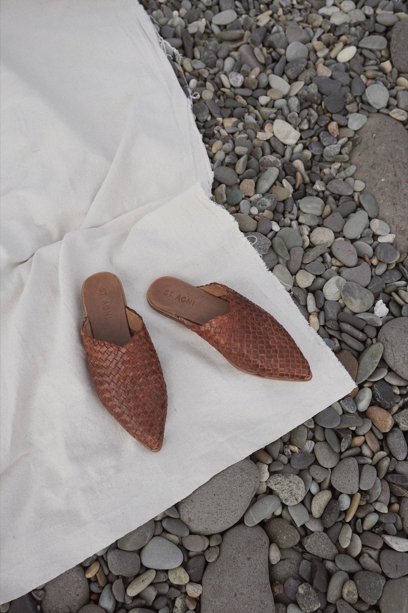 Embracing St. Agni's iconic woven leather technique, the handcrafted Caio Woven Flat is rich in texture and comfort, celebrating the process of creation and the human element involved. Composed with vegetable tanned leather, this classic and subtle slip-on design is nostalgic for eras gone by and defines beauty in simplicity.