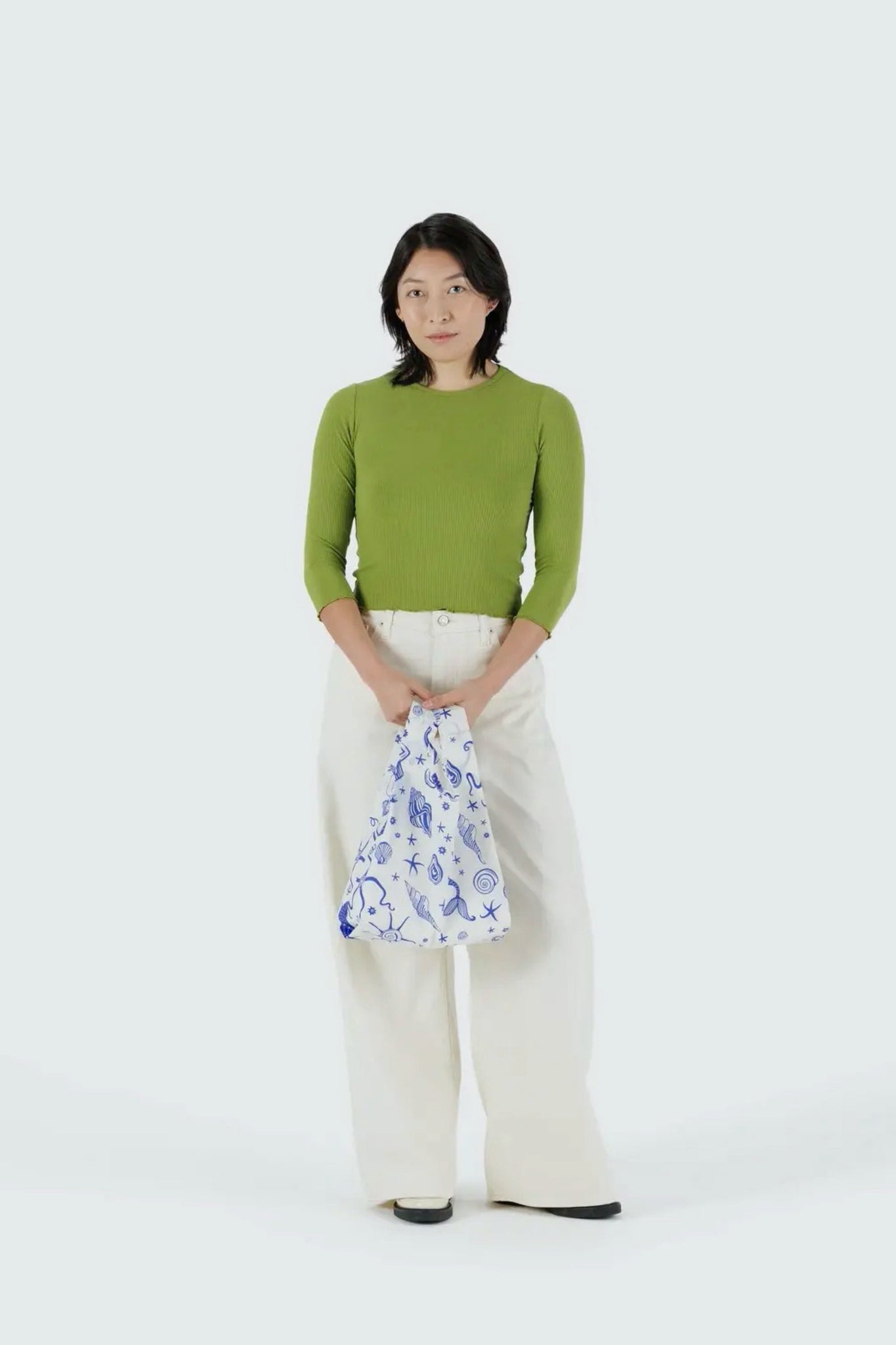 A smaller version of Baggu's best selling reusable shopping bag. Perfect for your lunch, a six pack, extra shoes, or a trip to the corner market. Machine Washable.