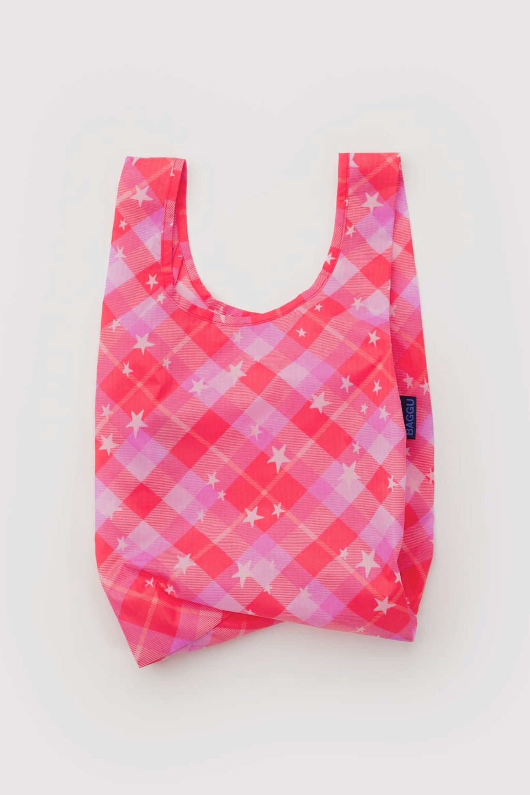 A smaller version of Baggu's best selling reusable shopping bag. Perfect for your lunch, a six pack, extra shoes, or a trip to the corner market. Machine Washable.