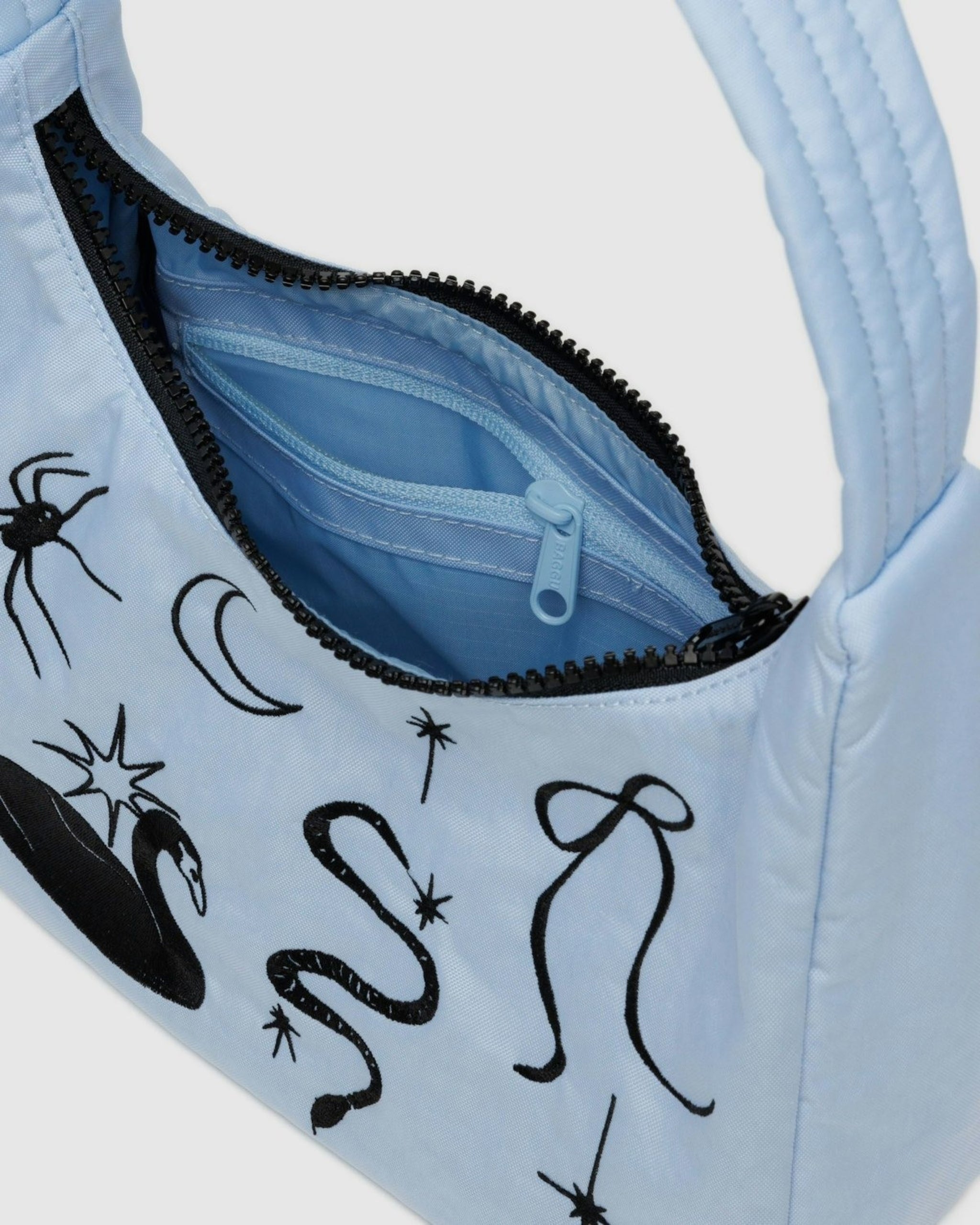 A mini version of the nylon shoulder bag. Slightly slouchy, slightly structured and complete with an interior pocket so everything has a place.