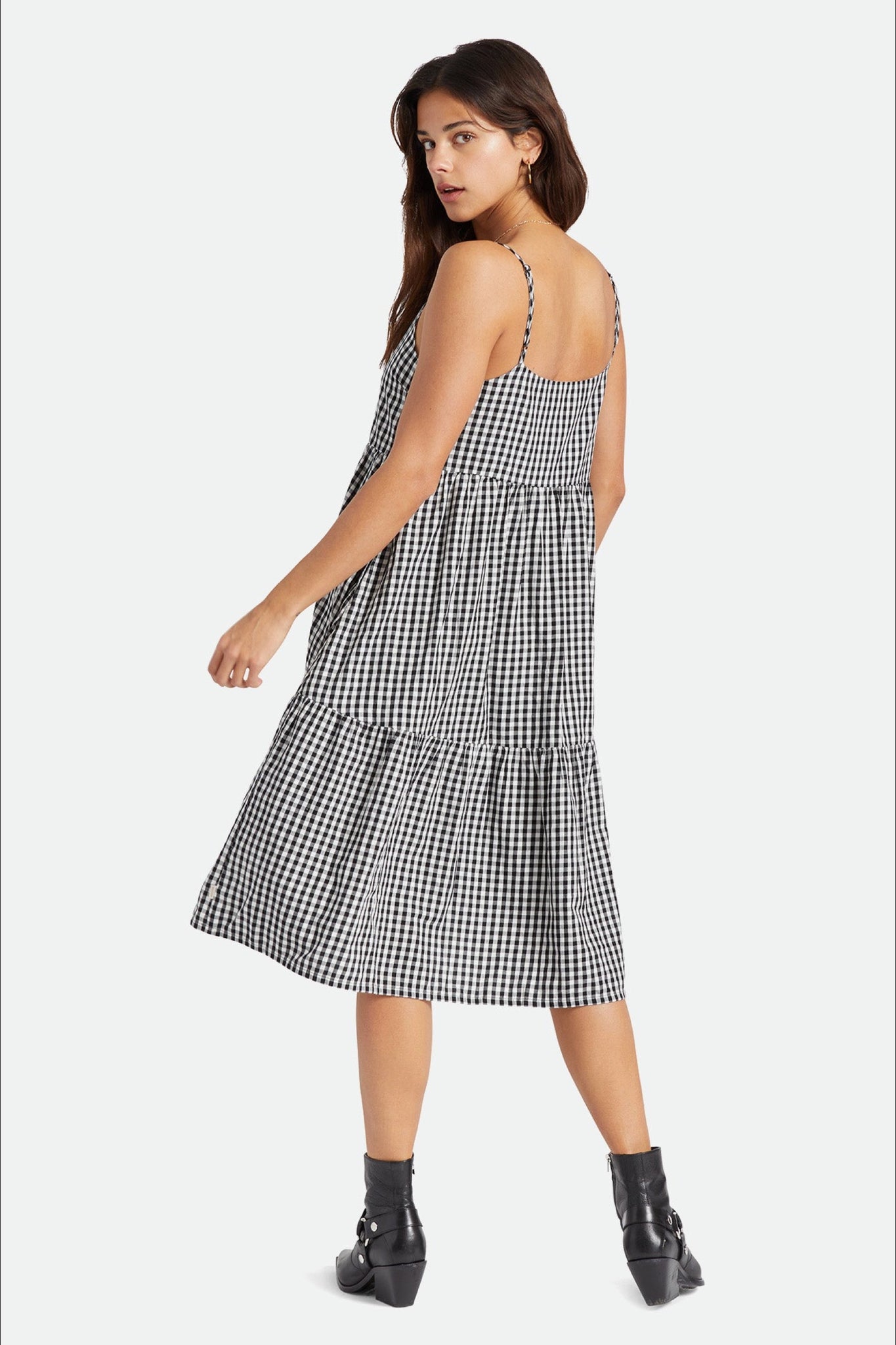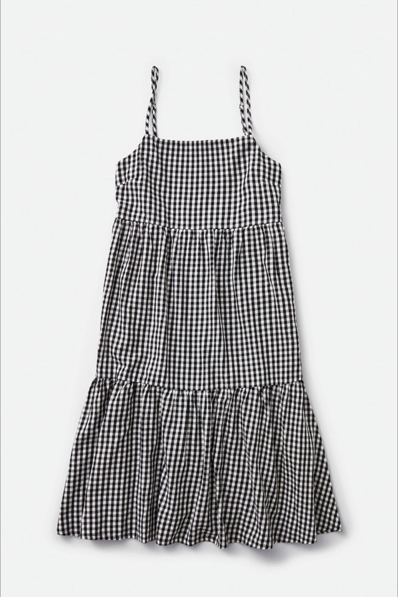 This sleeveless dress is made with cotton yarn-dye shirting in a gorgeous gingham print. It has three separate sections to give the skirt structure, while adjustable straps customize the fit.