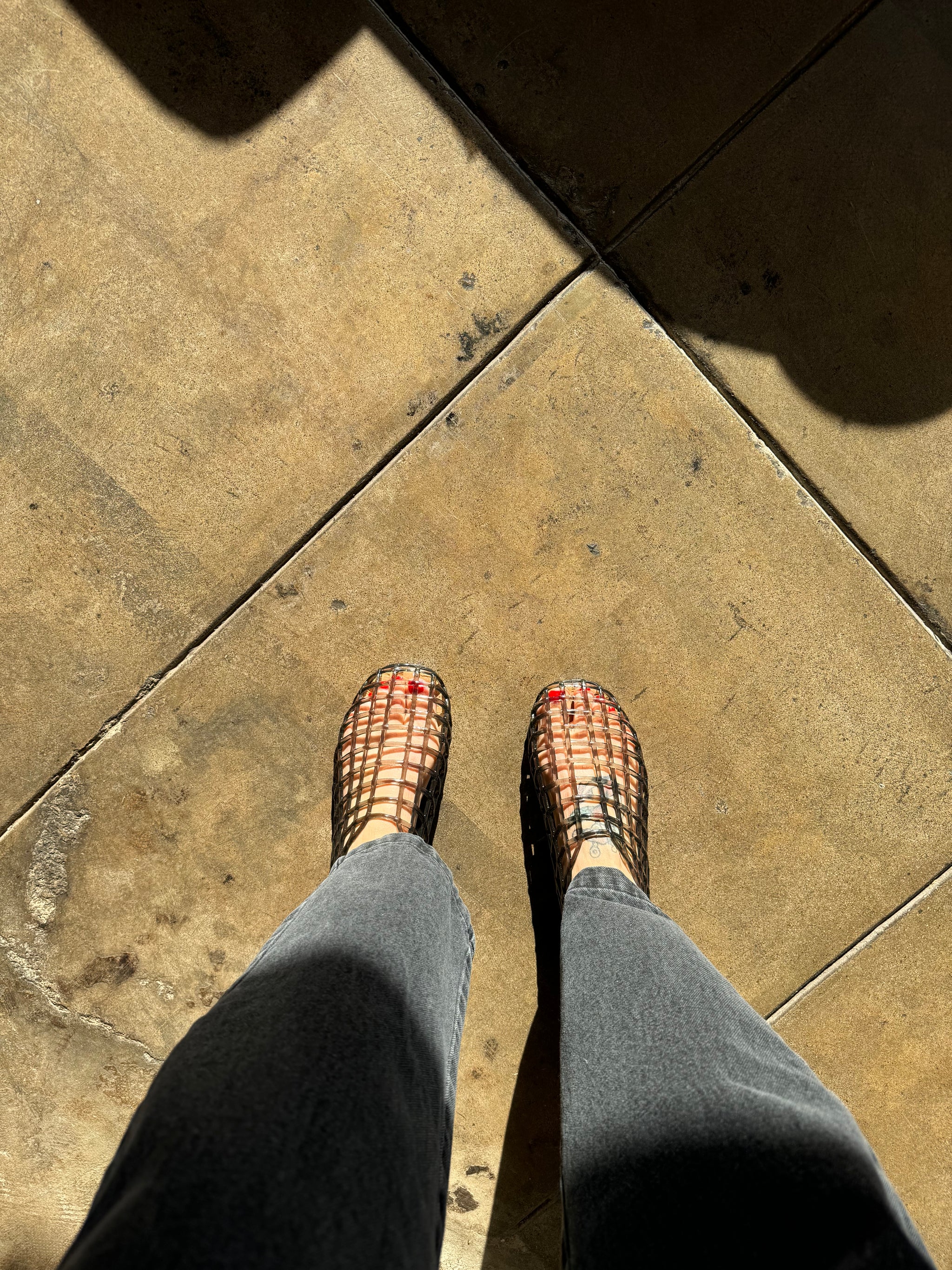 These playful shoes are made of a breathable jelly material and come in a vibrant red color. The open design adds a touch of whimsy to your outfit. Perfect for a day out with friends or a casual everyday look. (No basic flats here!)