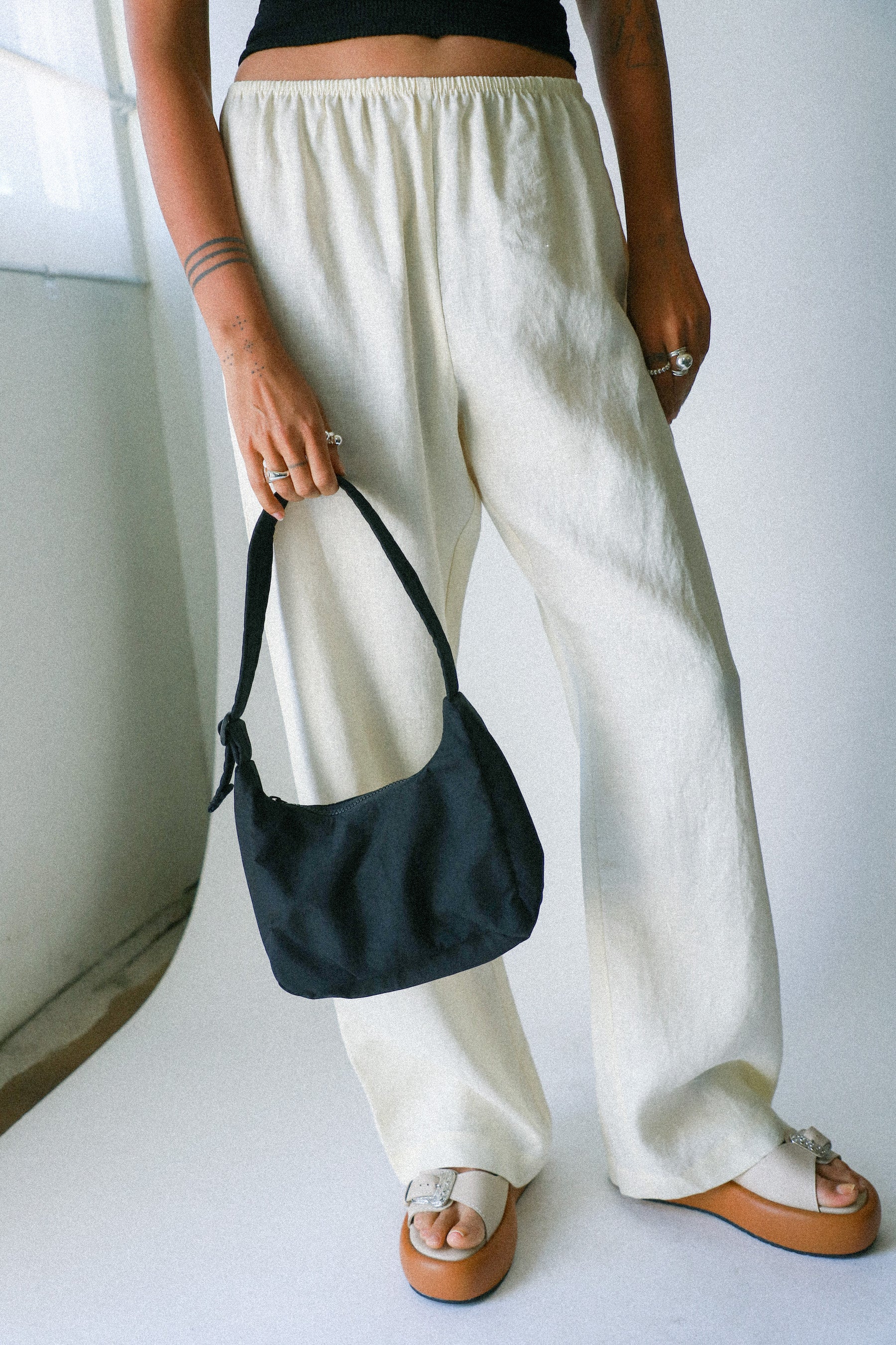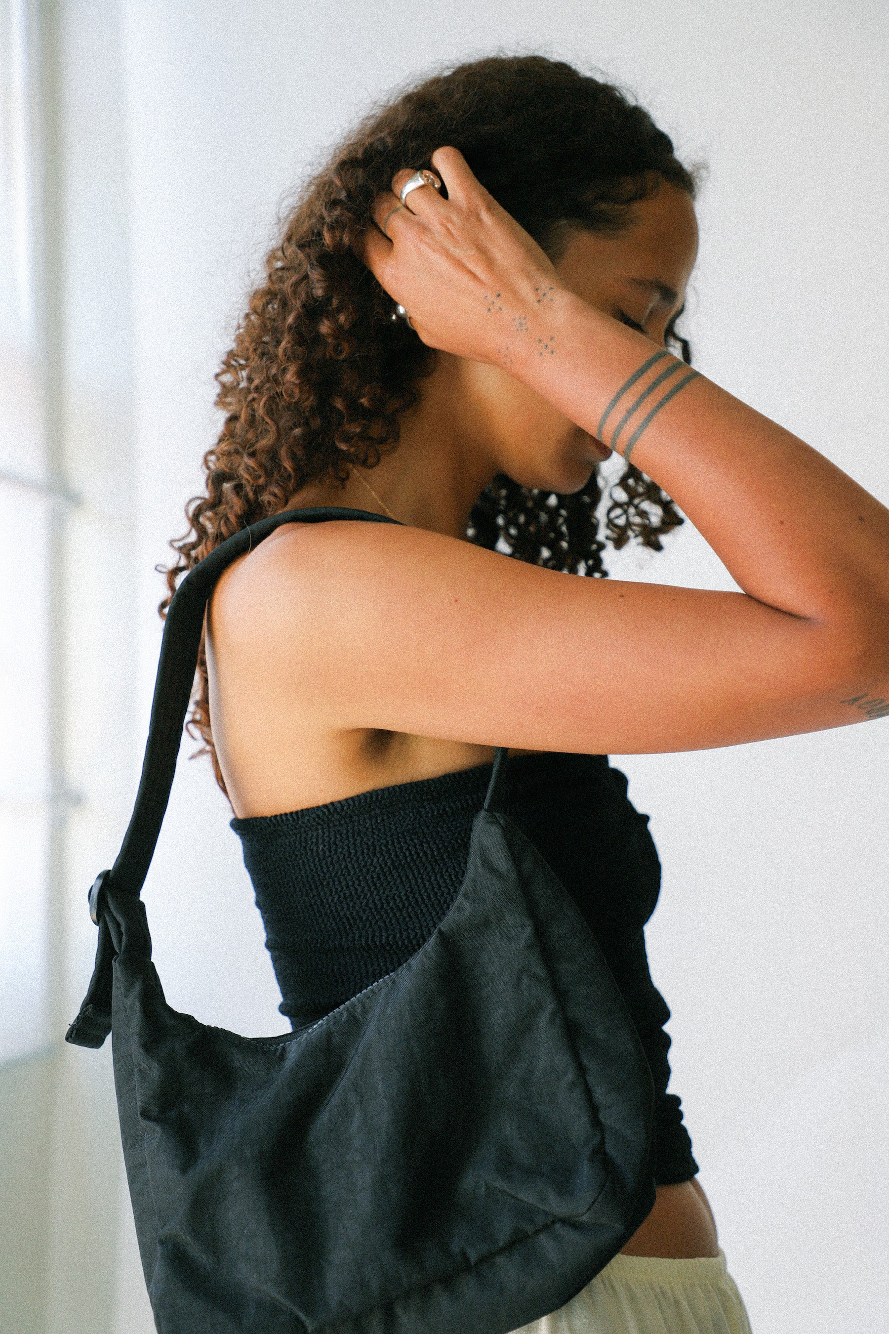 A mini version of the nylon shoulder bag. Slightly slouchy, slightly structured and complete with an interior pocket so everything has a place.