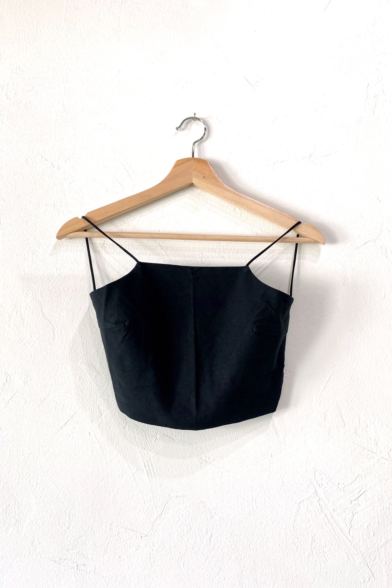 Minimal crop top featuring an open strappy back in a stretch fabric.