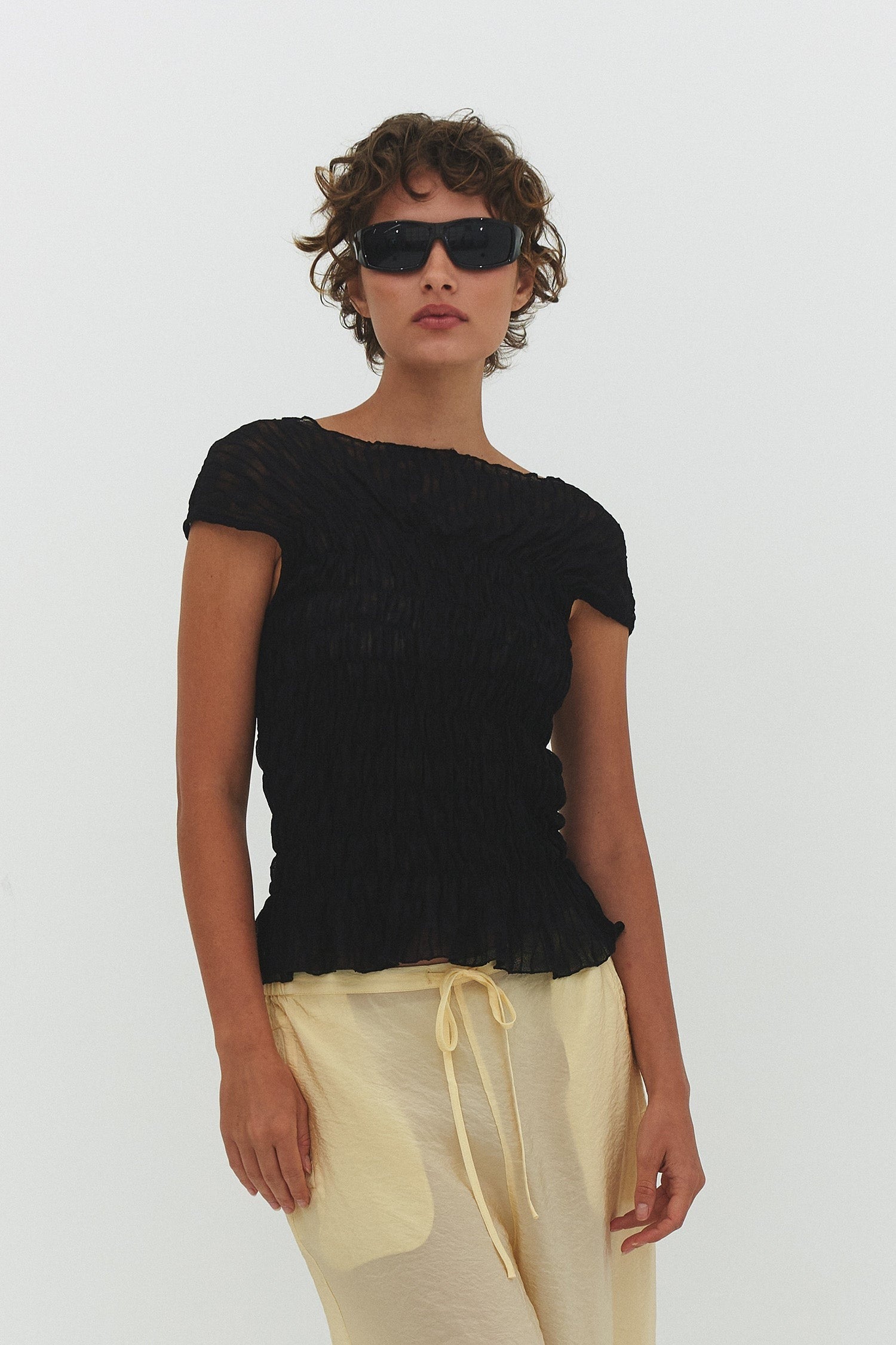Black Ruched Ross Sleeveless Top