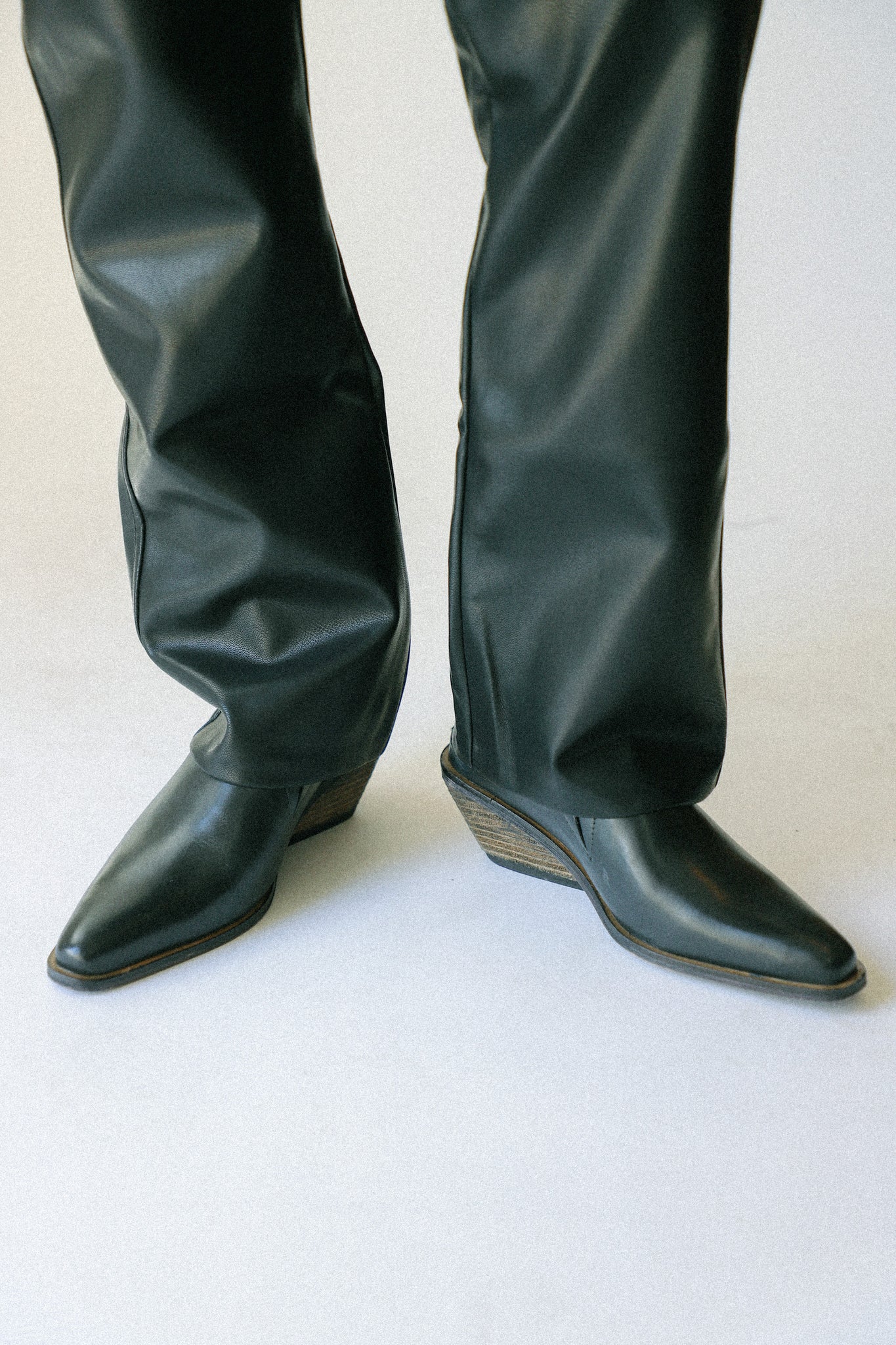 Rugged and contemporary meet with these unique wedge mules, featured in a Western-inspired style with a signature pointed toe for effortless edge.