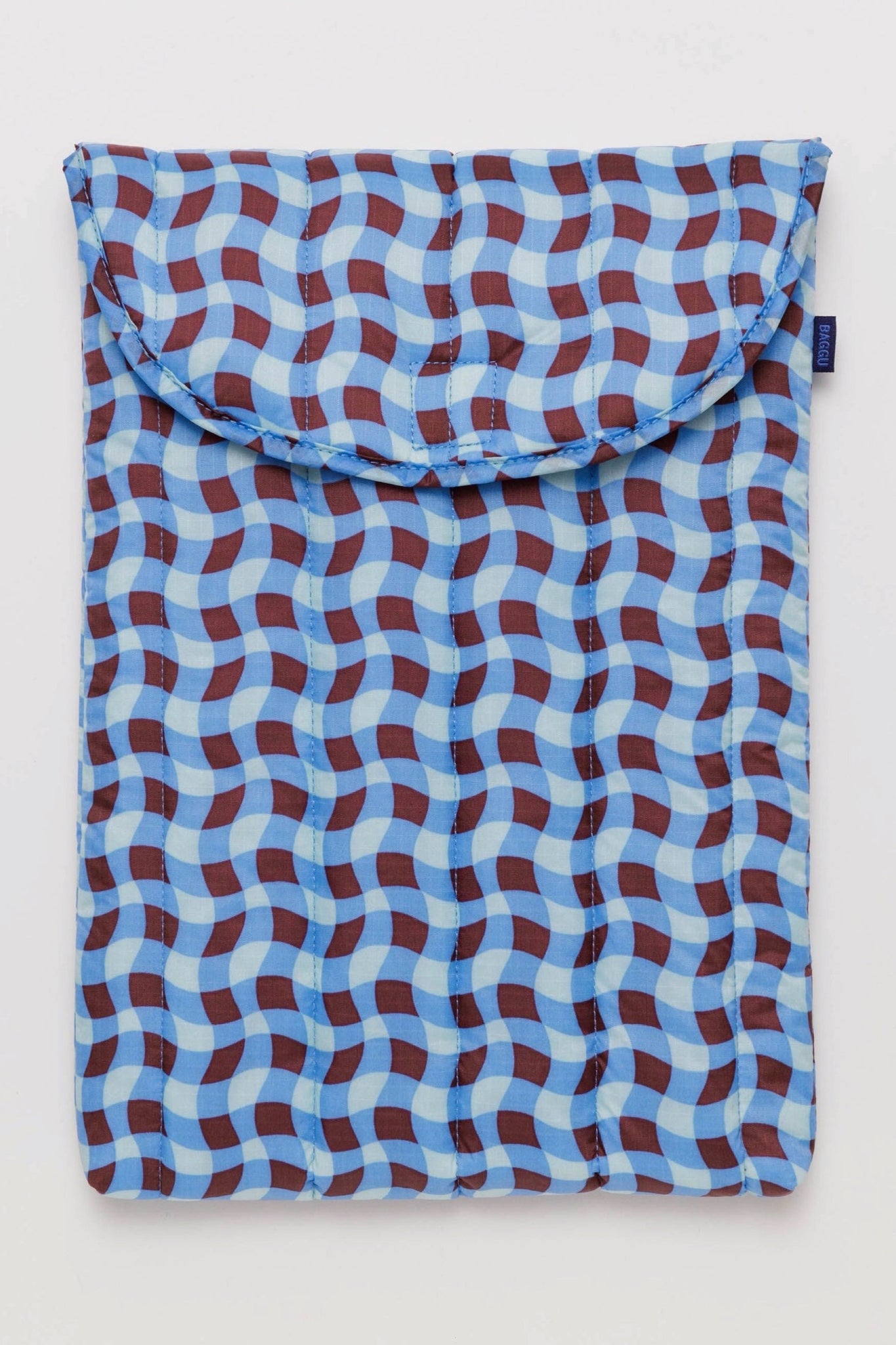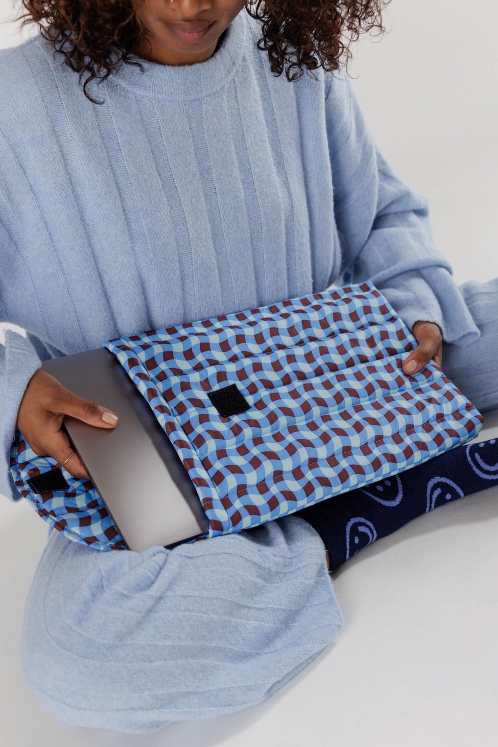 Blue Wavy Gingham Puffy Laptop Sleeve
