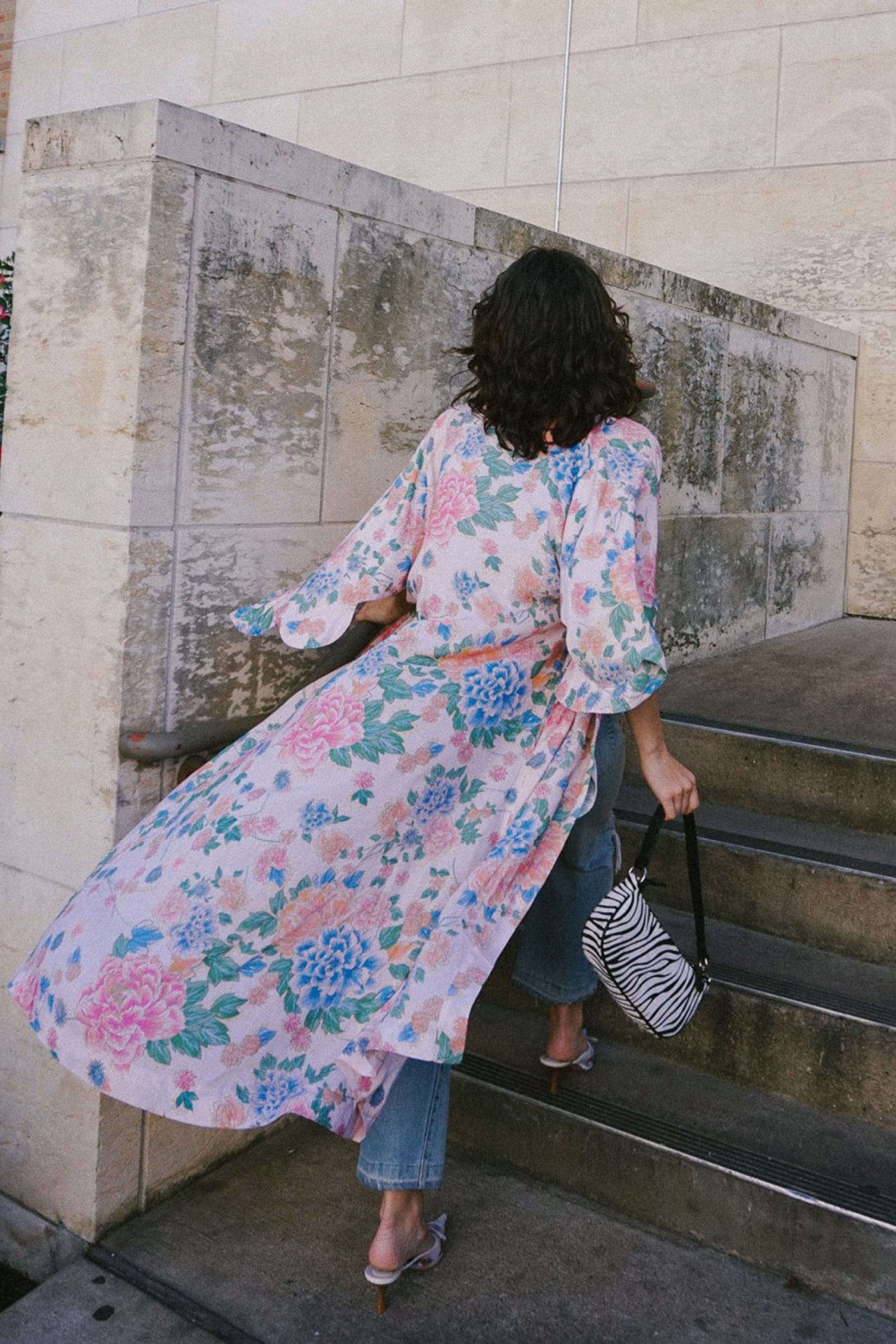Novella Royale's newest robe, the Lottie has a capelet sleeve, long bodice, and has functional pockets!