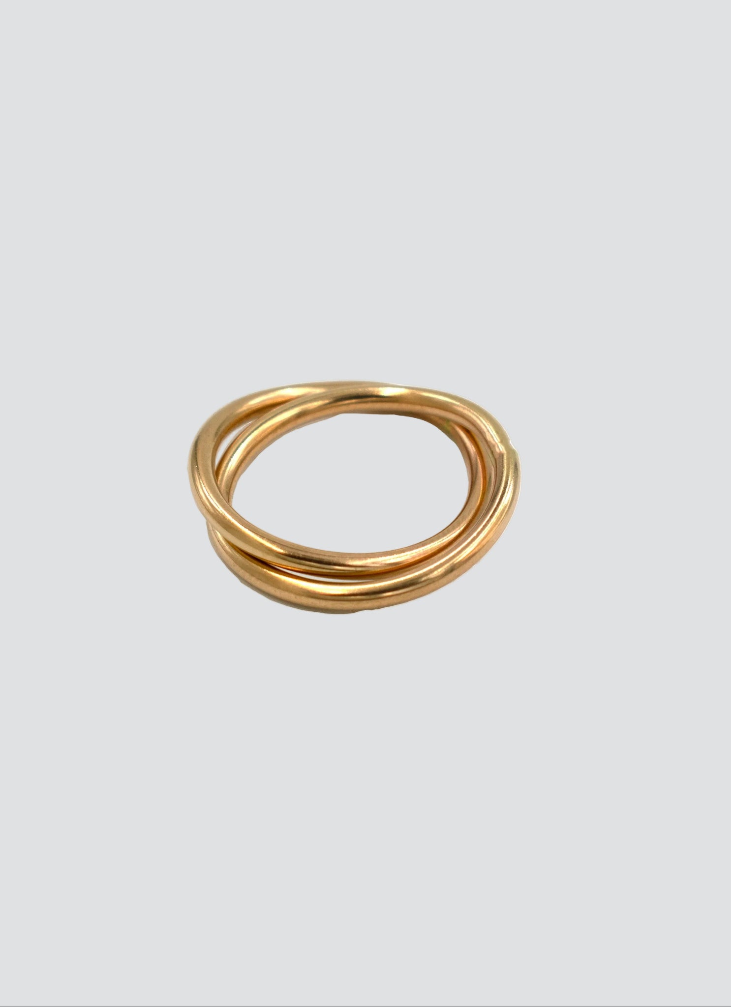 Two thick bands interlocked together to create one ring. Handmade just for you in our Long Beach, CA studio.