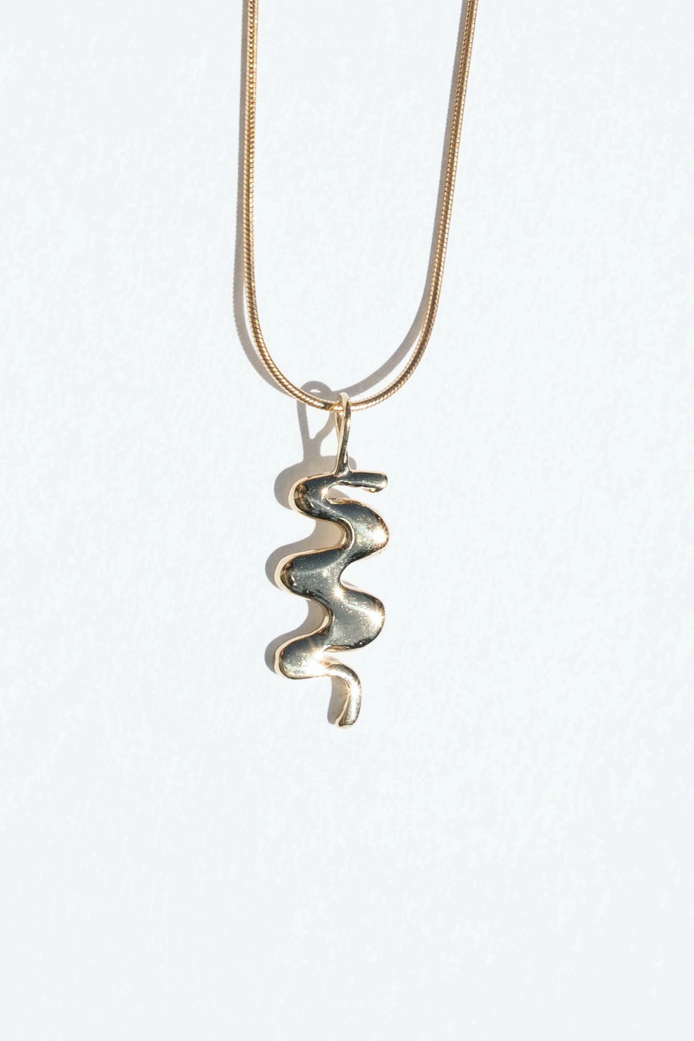 Inspired by the whimsical zig zag shape of kombu seaweed leaves. A hand carved brass pendant paired with an 18” gold filled chain.