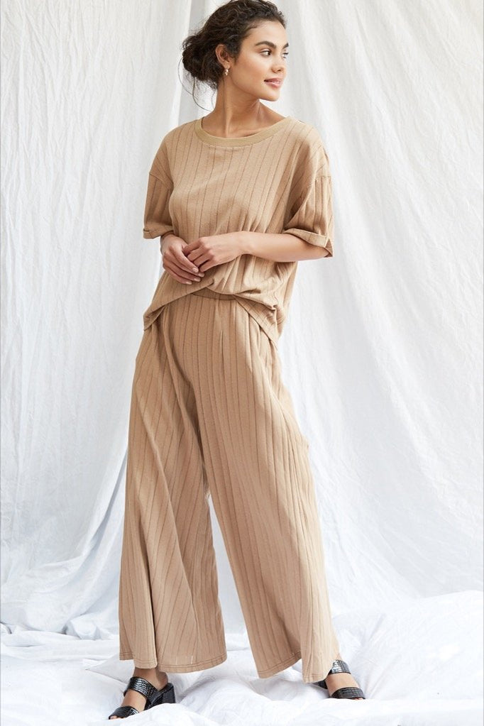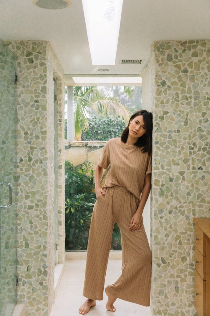 Made of soft cotton with striped eyelet detailing, the Bo Pant is an easy silhouette that looks good and feels even better. Our new go-to pant for the weekend, these wide leg camel pants feature an elastic waistband, side pockets, and a high waisted fit.