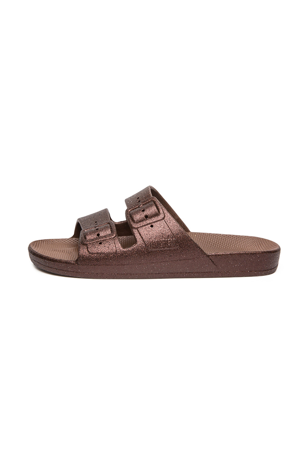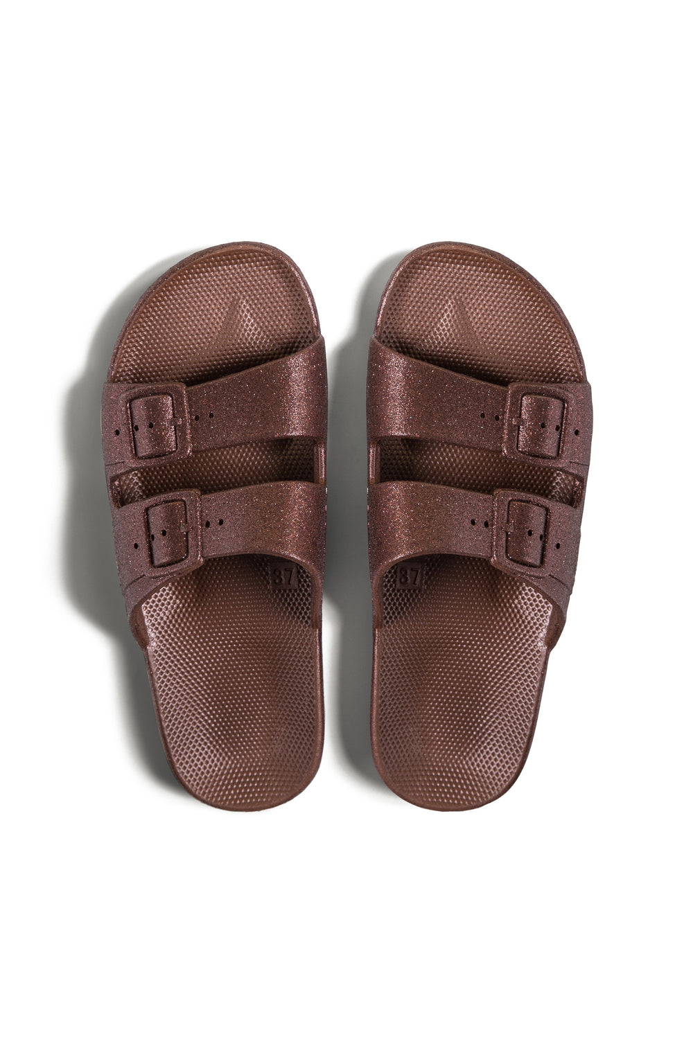 Freedom Moses is all about celebrating summer 365 days a year. These slides are completely vegan, recyclable and feature sustainable injected PCU with fixed buckles which are waterproof and washable.
