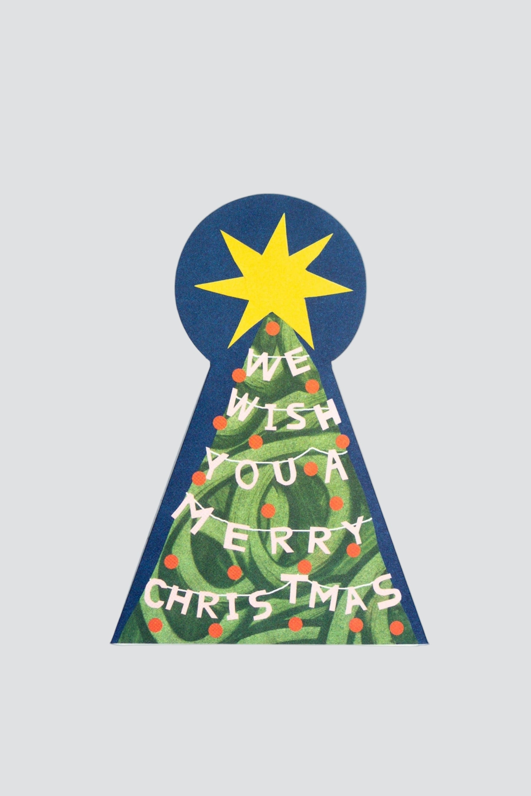 A star-topped Christmas Tree card with fold-out sides so it stands beautifully on display. Made in the UK.
