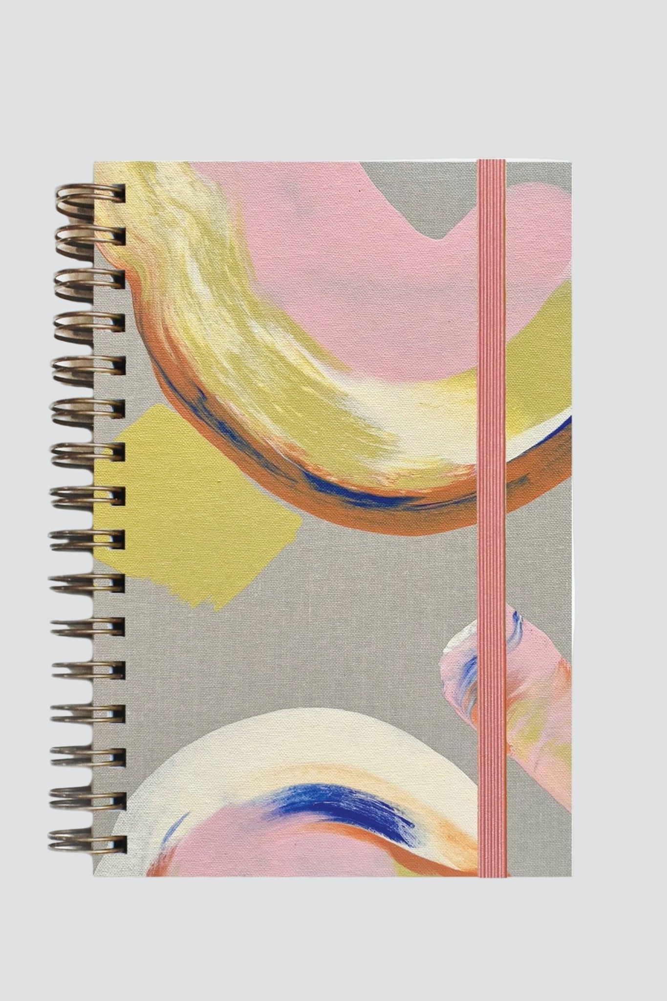 Hand-painted cloth cover with high quality wire binding. Both cover and back cover are hand painted, making each notebook completely one of a kind. Features 120 blank pages and an elastic closure to keep your notes secure.