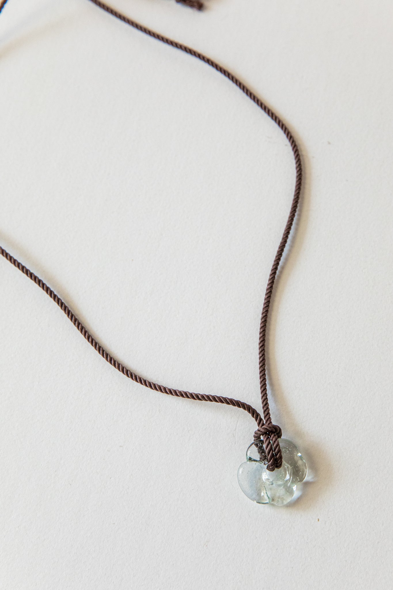 Handmade glass flower on cotton blend cord. Glass flower blown in Italy.