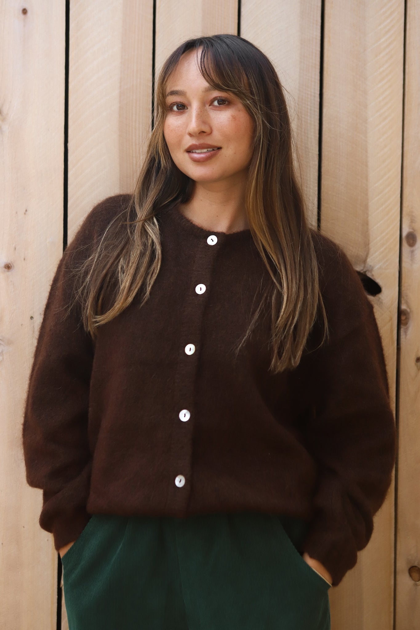 The Leila Cardigan blends vintage charm with effortless ease. Cozy yet relaxed, it pairs a soft wool-blend warmth with a gentle oversized fit and shell buttons for a charming touch of detail. Perfect for layering or styling off-duty, a versatile addition to any wardrobe.