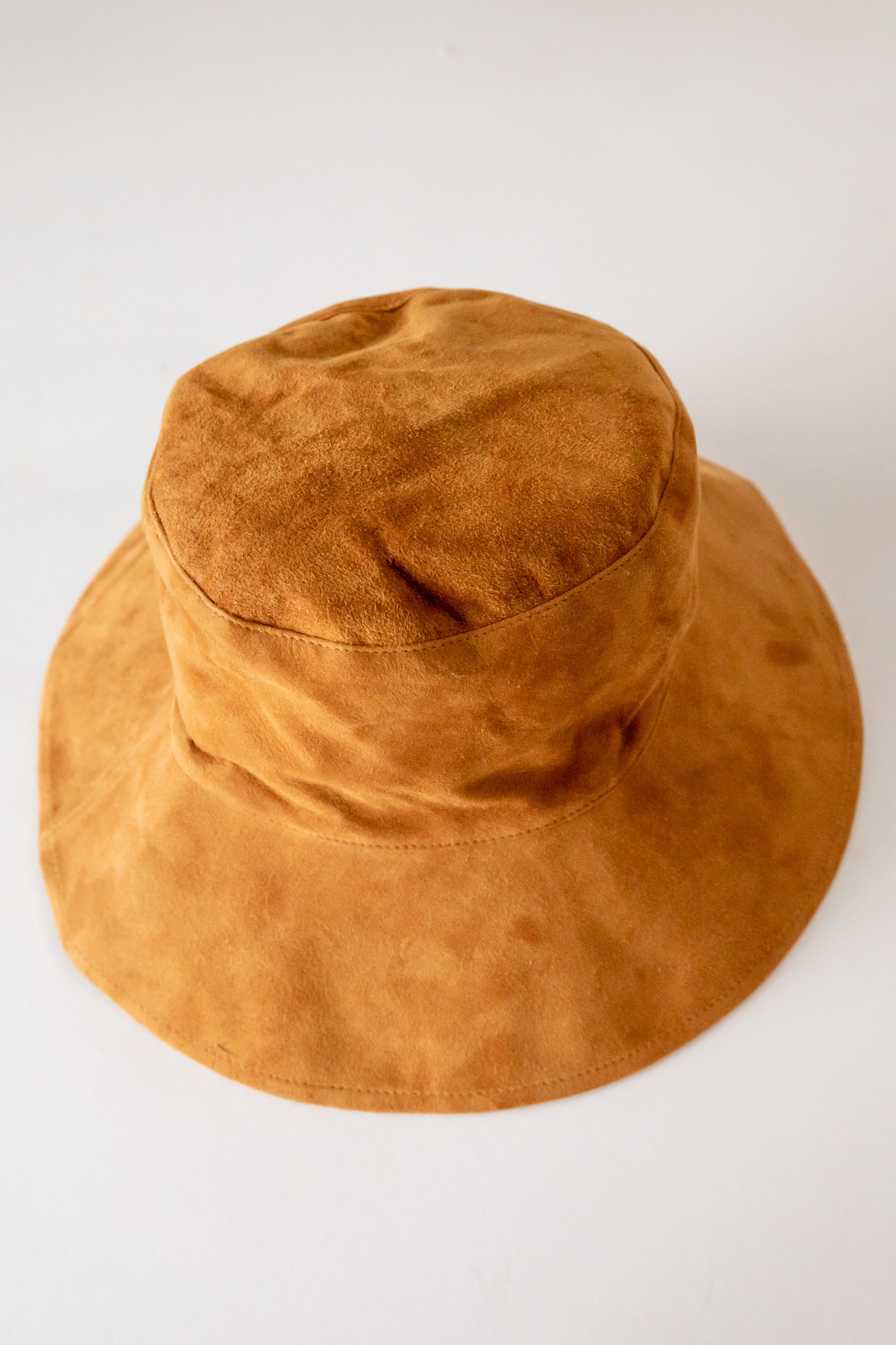 Sustainable handcrafted suede bucket hat. Katie is lined in a monochromatic chocolate cotton to keep you cool while rocking this gorgeous hat.