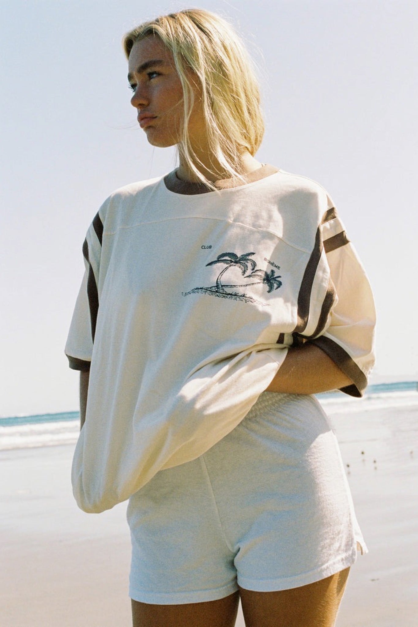 An oversized tee with a nod to a 1960s Jersey and design of a tourist tee, join Club Bohème.