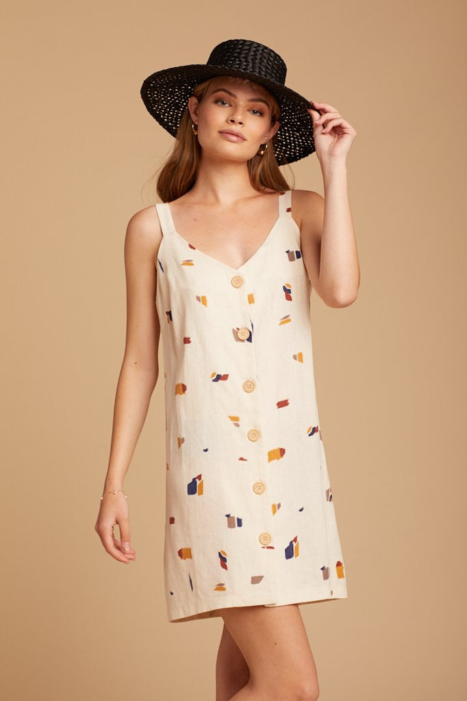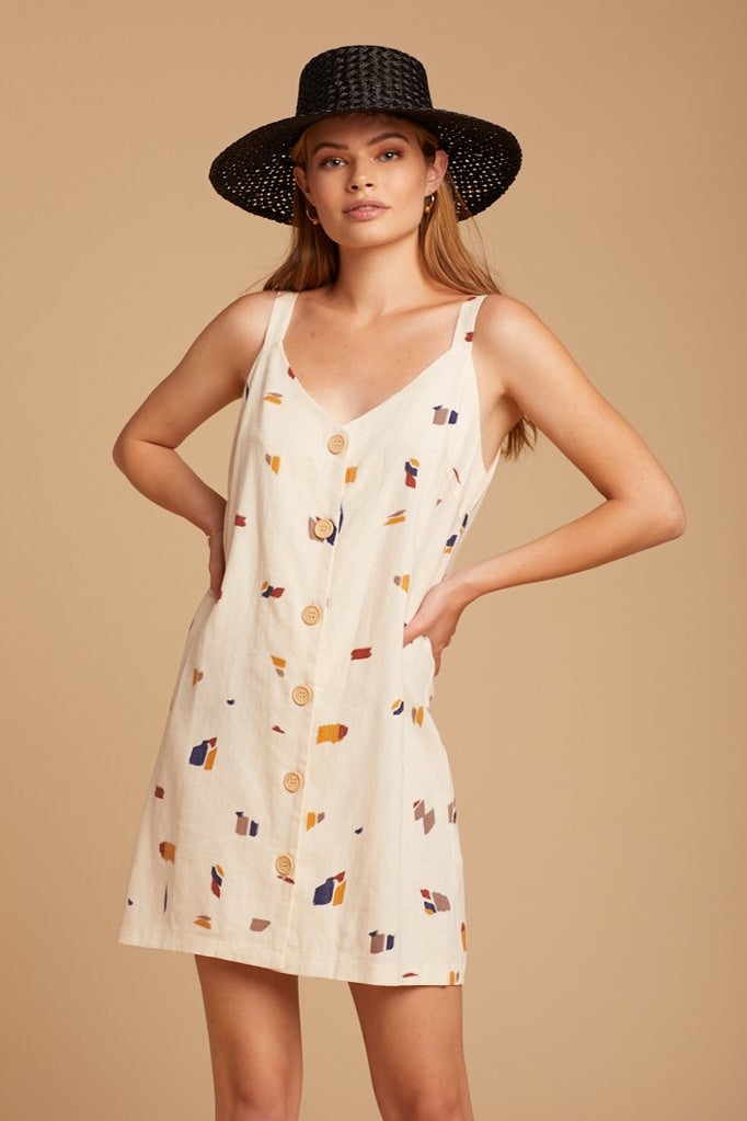 This mini features wooden buttons, a loose silhouette, and a slight v-neck detail. Perfect for Summer, we've got you covered with this easy, little number. Runs true to size. Model wears size Small.