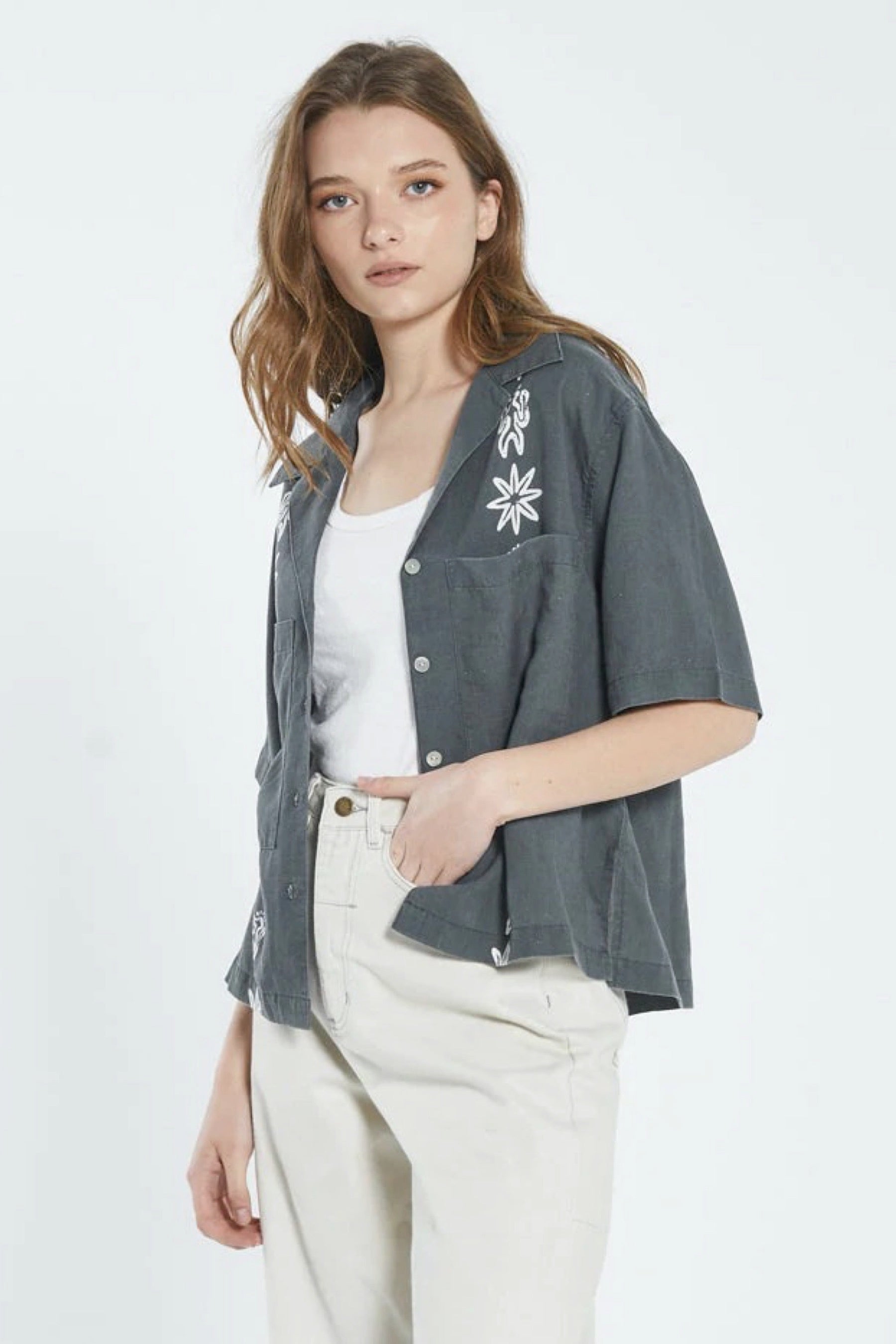 The Better Future Pocket Shirt is a linen blend that is oh so divine. With sustainability in mind, this foxy button-up was made to rock your world. Style it opened with a tank and jeans or buttoned up with some flowy trousers and a slick bun for something a bit edgier.